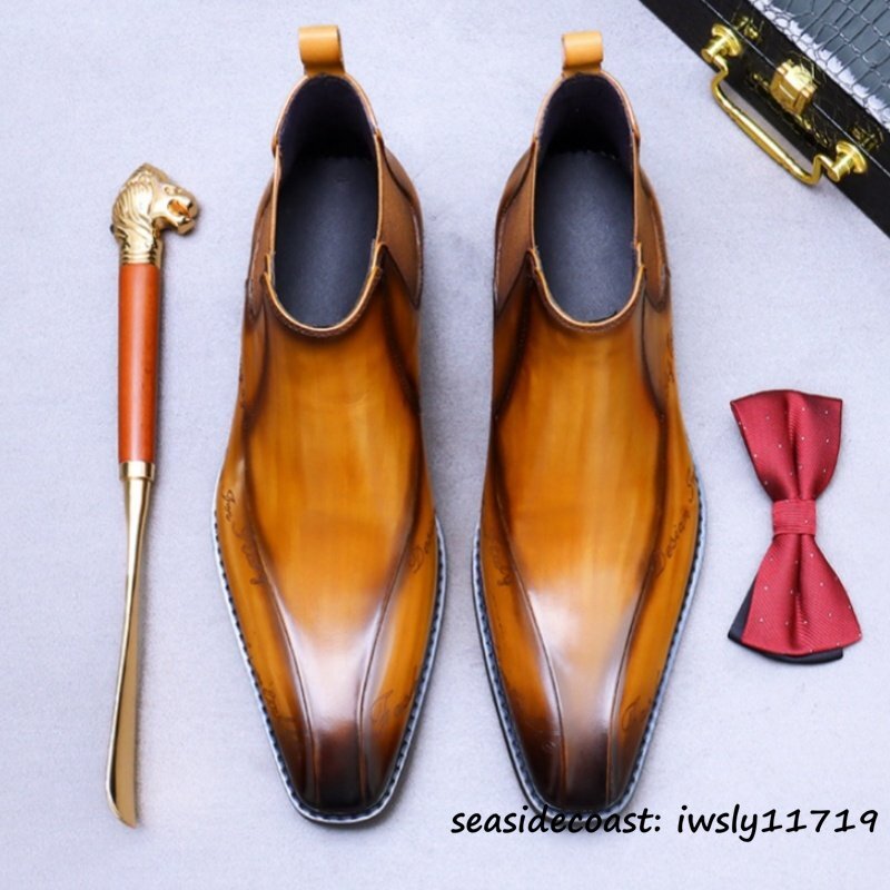 最上級*定価15万超 本革 マーティンブーツ メンズブーツ 牛革 レザーブーツ 職人手作り ショートブーツ 皮靴 紳士靴 通勤 ブラウン 25.0cm