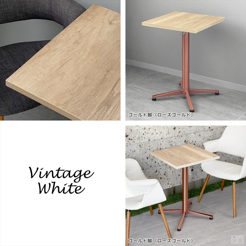 業務用 レストランテーブル 500×500×H700 RTB-5050 ヴィンテージホワイト ローズゴールド ゴールド脚 |