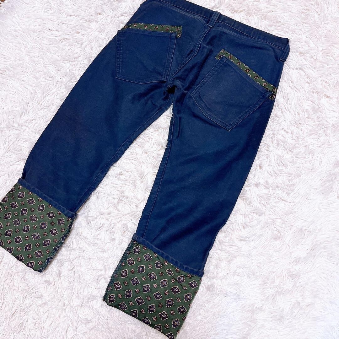 切り替え 綿 裾 ロールアップ 柄 ペイズリー