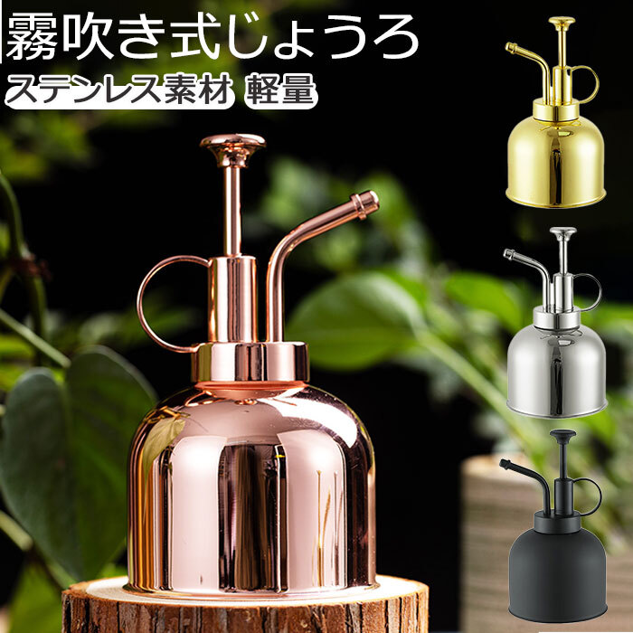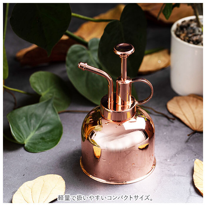 商品説明 | ・・毎日の植物のお手入れがもっと楽しくなる♪おしゃれな「霧吹き式じょうろ」。 ・小さな植木鉢や室内栽培植物の水やりに最適な霧吹きタイプ。 ・サビに強いステンレス素材を採用。 ・軽量で扱いやすいコンパクトサイズ。 ・スタイリッシュなデザインだから、置いておくだけでおしゃれなインテリアに♪ |