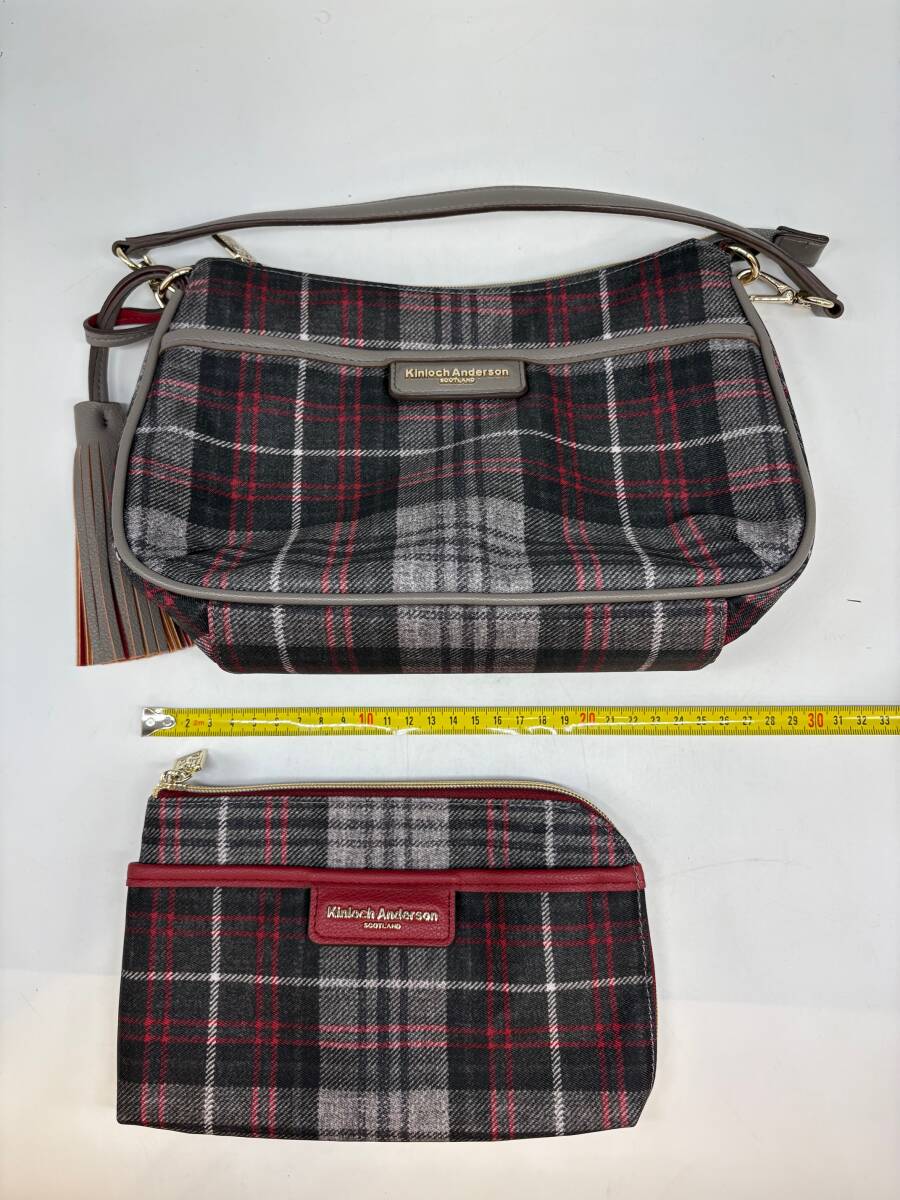 S10546〇【2点セット美品】 Kinloch Anderson キンロックアンダーソン レディース ハンドバッグ ウォレットポーチ 内ポケット付 チェック柄