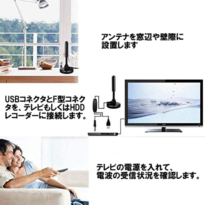 地デジ用室内アンテナです。 軽量コンパクトな設計ながら30dbiの利得性能!!! 現在放送されているデジタルハイビジョン放送を受信でき、高画質な映像をお楽しみ頂けます ケーブル長が5mあるため、ご自宅の電波状況に合わせて様々な場所に設置可能です。 ご自宅以外にも、キャンピングカーのルーフや、自動車のダッシュボードなどにも設置可能です。 さらにワンセグ携帯やスマートフォン、タブレット、カーナビ、家庭用テレビなど多くの機器に対応しています。 ■受信距離:130km ■受信帯域:UHF/VHF ■受信周波数: 40MHz〜862MHz ■利得(gain):30dBi ■ケーブル長:約5m ■本体サイズ: 約13×6.4cm ※アンテナの受信は、電波塔との距離、そして周囲の環境によって異なります ※丘、山、建物、さらには木、地域の地形や障害物などの影響を受け受信に影響を与えます ※また、大きな電力を消費する機器から遠ざけてください ※ https://tv-area.jp/#/にて居住地の居住環境が屋内アンテナに適しているかどうかを購入前に確認してください ※この屋内用アンテナは地デジ専用です。BS・CSには対応しておりませんのでご注意ください ※受信チューナー内蔵機器に限ります |