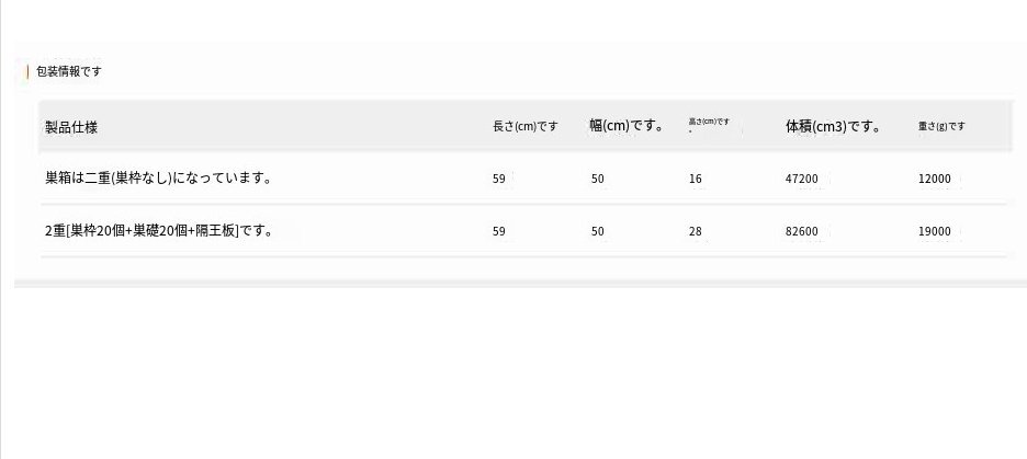 型番:巣箱二重(巣枠を持たない)/朗氏巣箱二重【巣枠20個+巣基礎20個+王隔板】