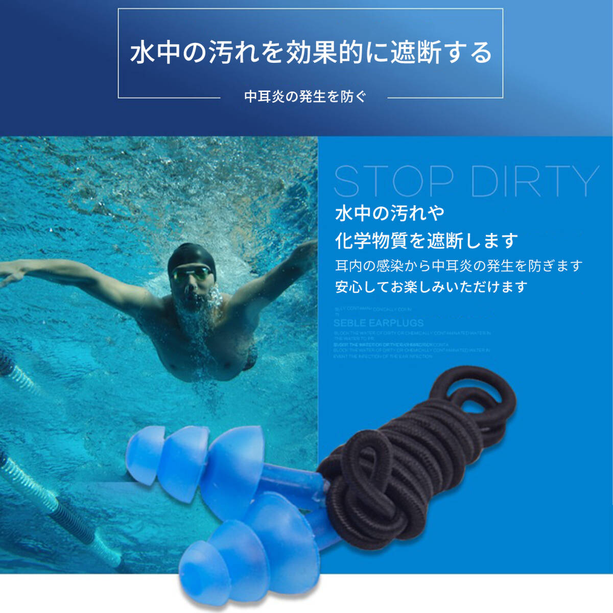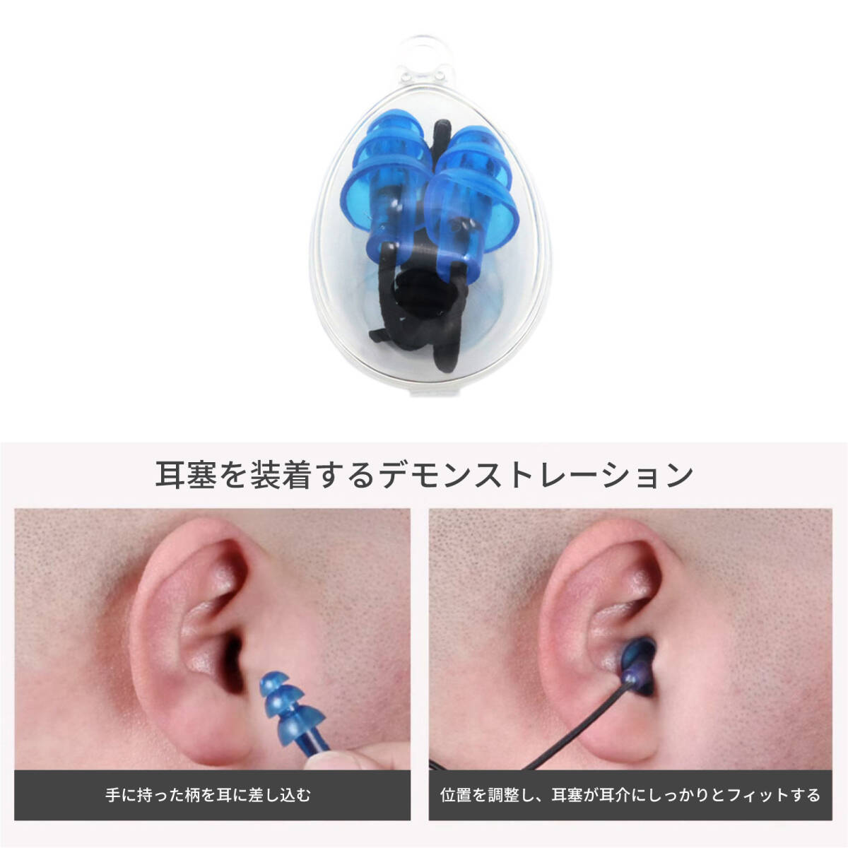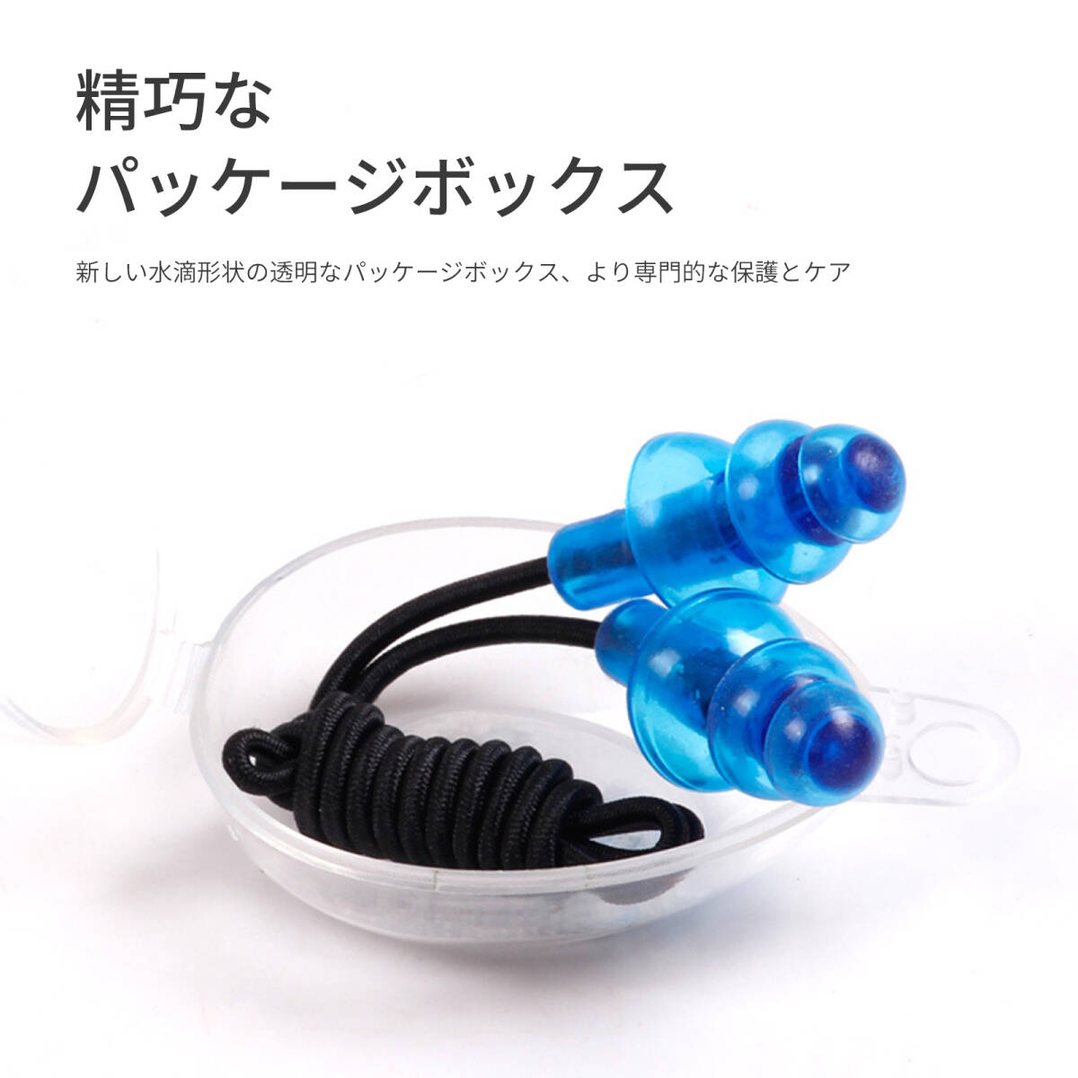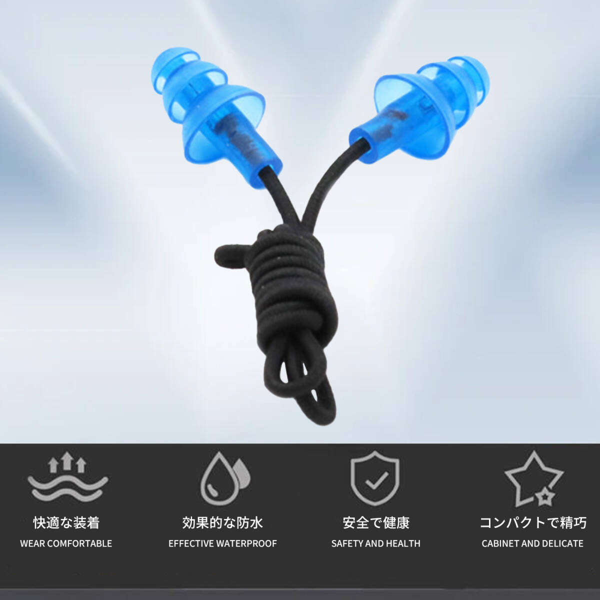 | 製品について | 1.【耐久性】 伸縮性のある耳紐は、簡単には切れず、長持ちします。 2.【紛失防止設計】 耳紐付きで、イヤープラグの紛失を防ぎます。 3.【高品質素材】 高品質な素材を使用しており、柔らかく快適で、自由に曲げることができます。 4.【多層保護】 大きさが異なる三層のレベルがあり、さまざまなニーズに応え、複数の保護を提供します。 5.【強力な防水性】 螺旋状の耳に挿入するデザインで、三段階に水流を遮断し、密封性と防水性を強化します。 |