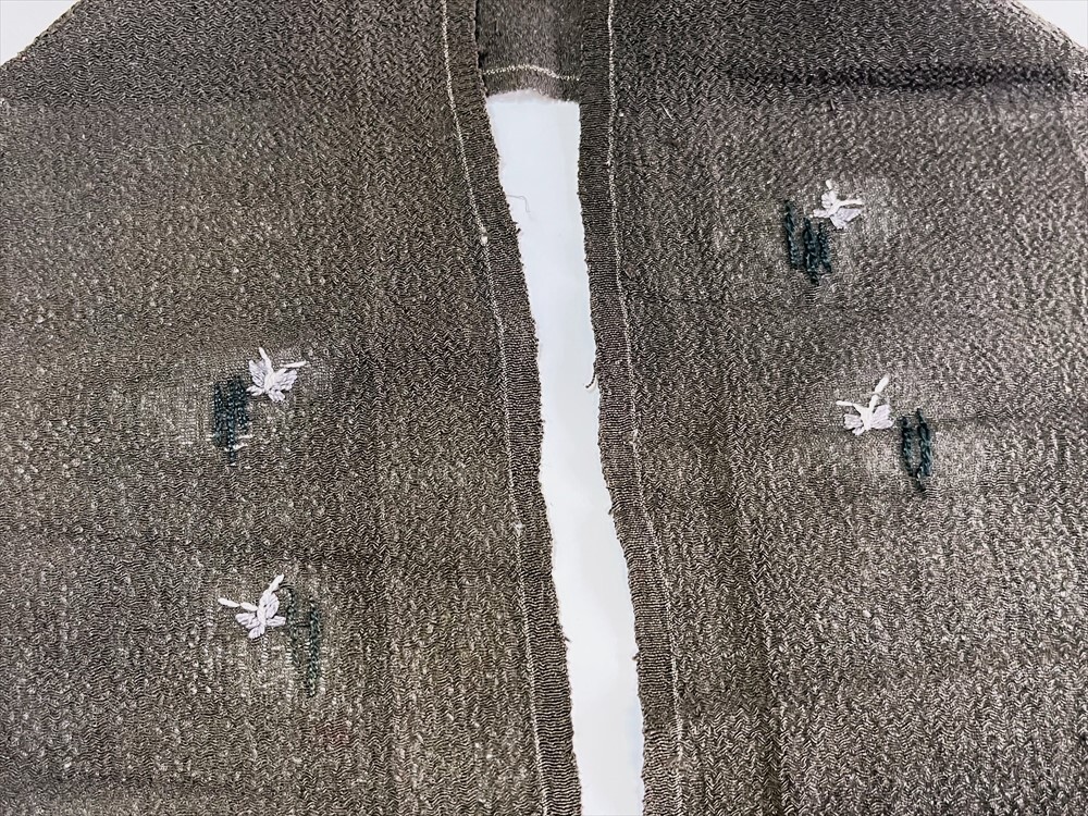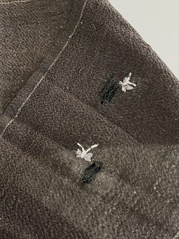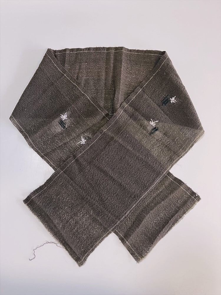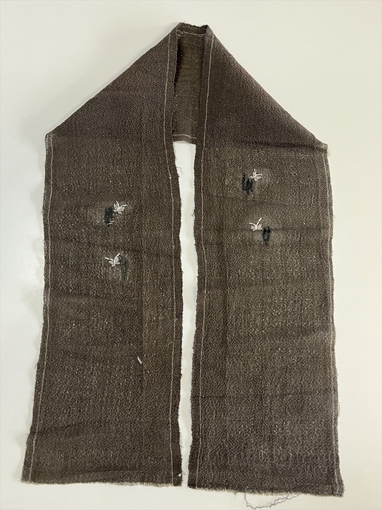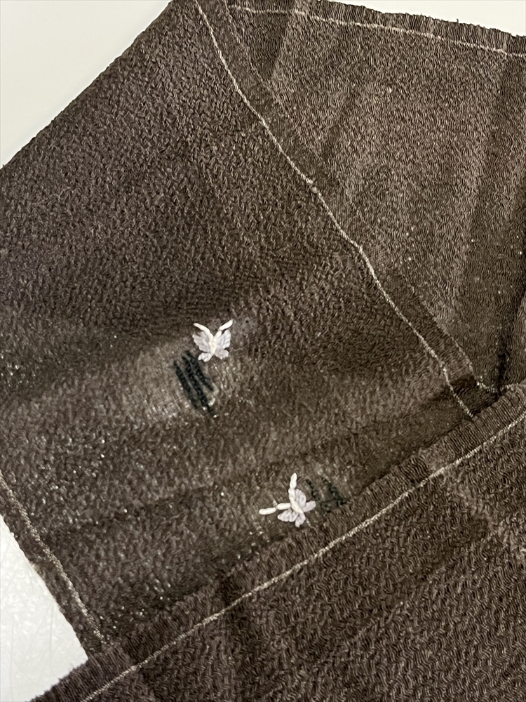 花とら●アンティーク和装小物 半衿 半襟 濃茶 蝶 刺繍 リメイク 素材 細工用にも    250920