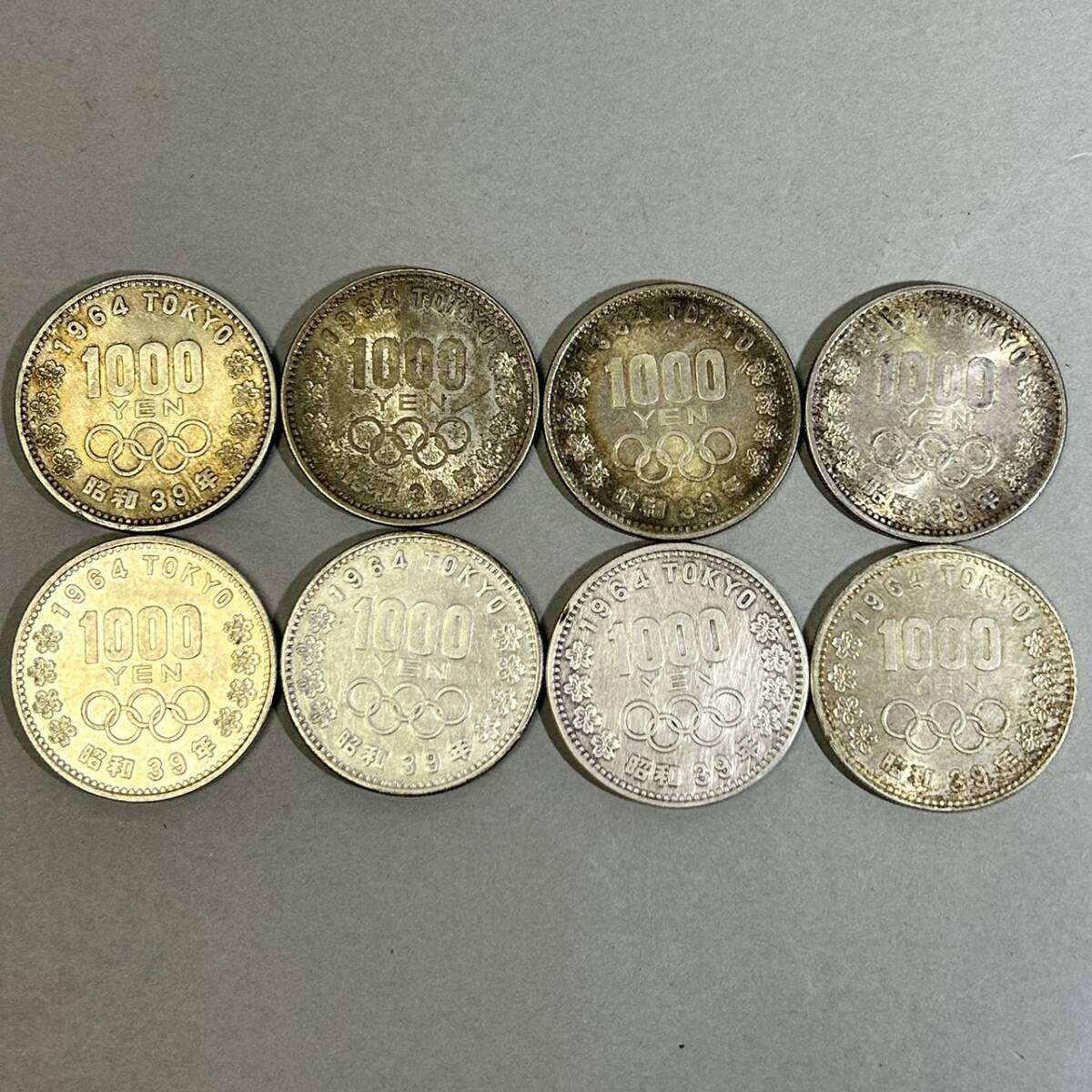 S206 1000円銀貨 まとめて 8枚 東京オリンピック 昭和39年 1964年 額面8,000円 総重量約159.5g 古銭 記念 硬貨 貨幣 千円銀貨 同梱NG