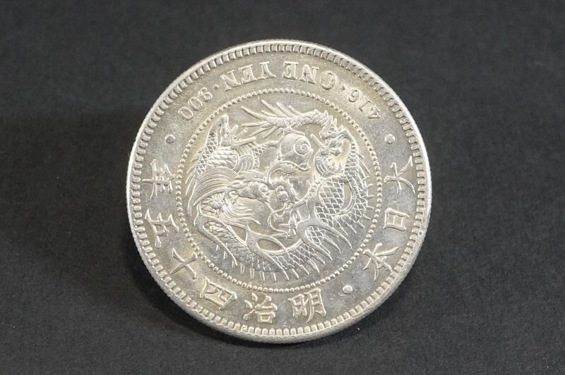 (333)日本貨幣 新1円銀貨 小型 明治45年◆真正品◆M45 量目約26.92g 直径約38.1mm 一圓 一円 明瞭ウロコ 近10A近代銭 古銭 硬貨 状態良好