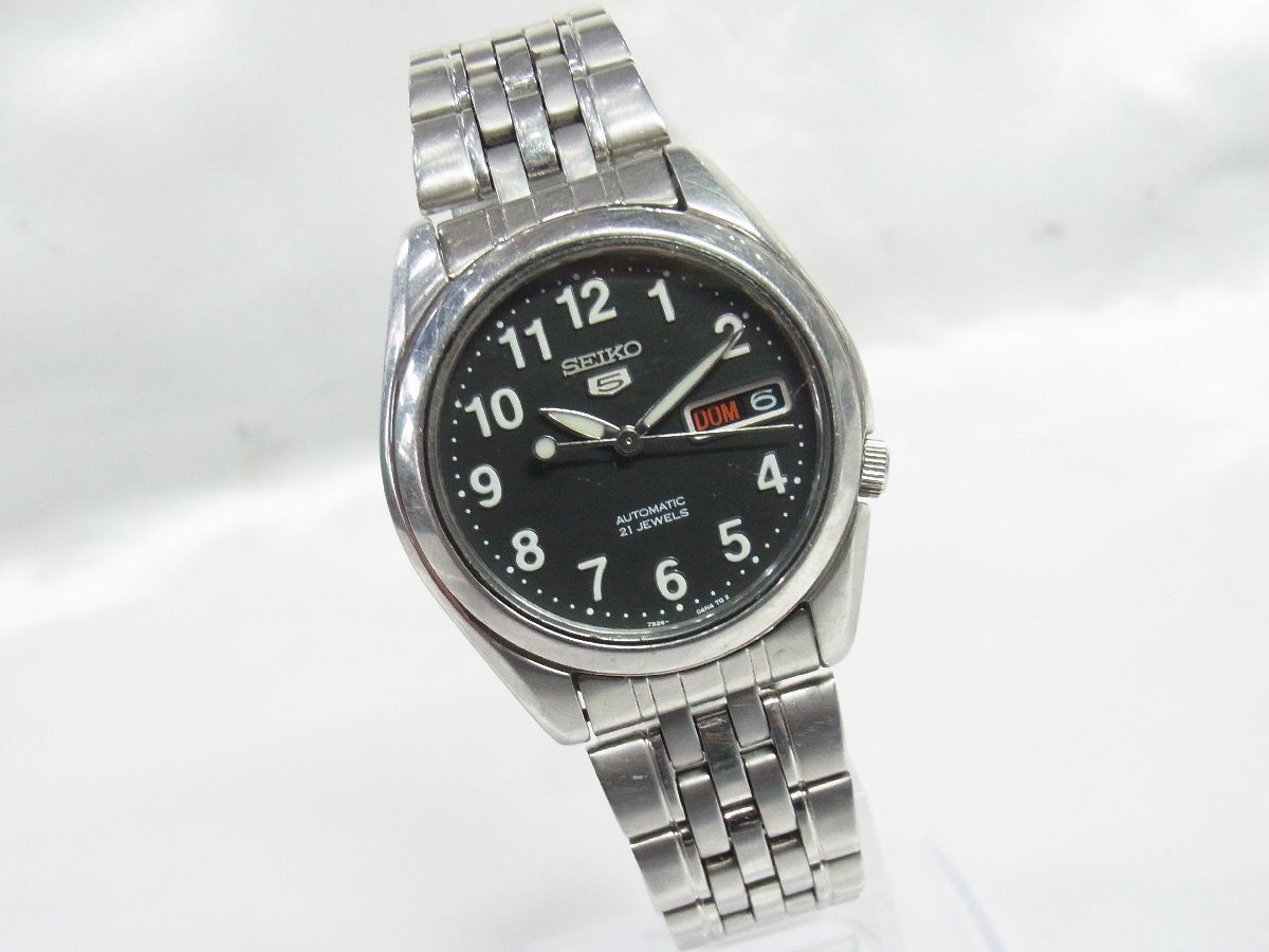 1円~【稼働】セイコー SEIKO ファイブ 7S26-01V0 21石 Call.7S26B メンズ 腕時計 3針 オートマチック デイデイト ラウンド SS 本体シルバー 文字盤ブラック系 純正ベルト | |