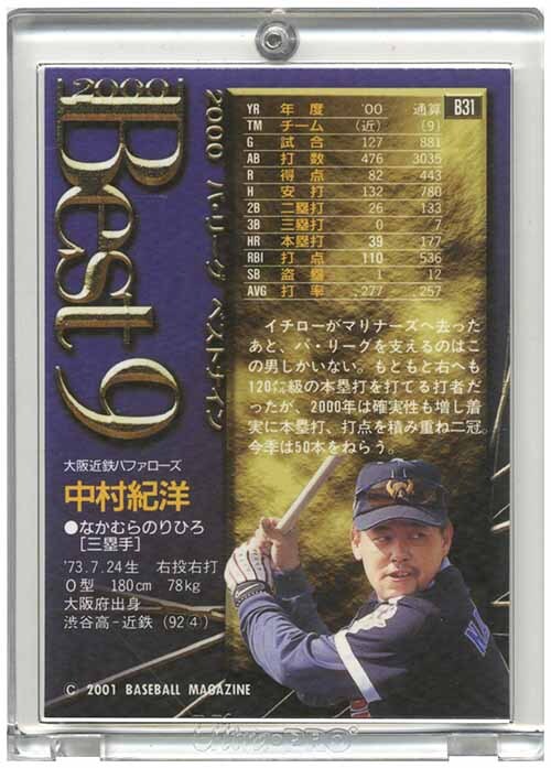 即決! 2001 BBM Best 9 #B31 中村 勝広 挿入 3D カード