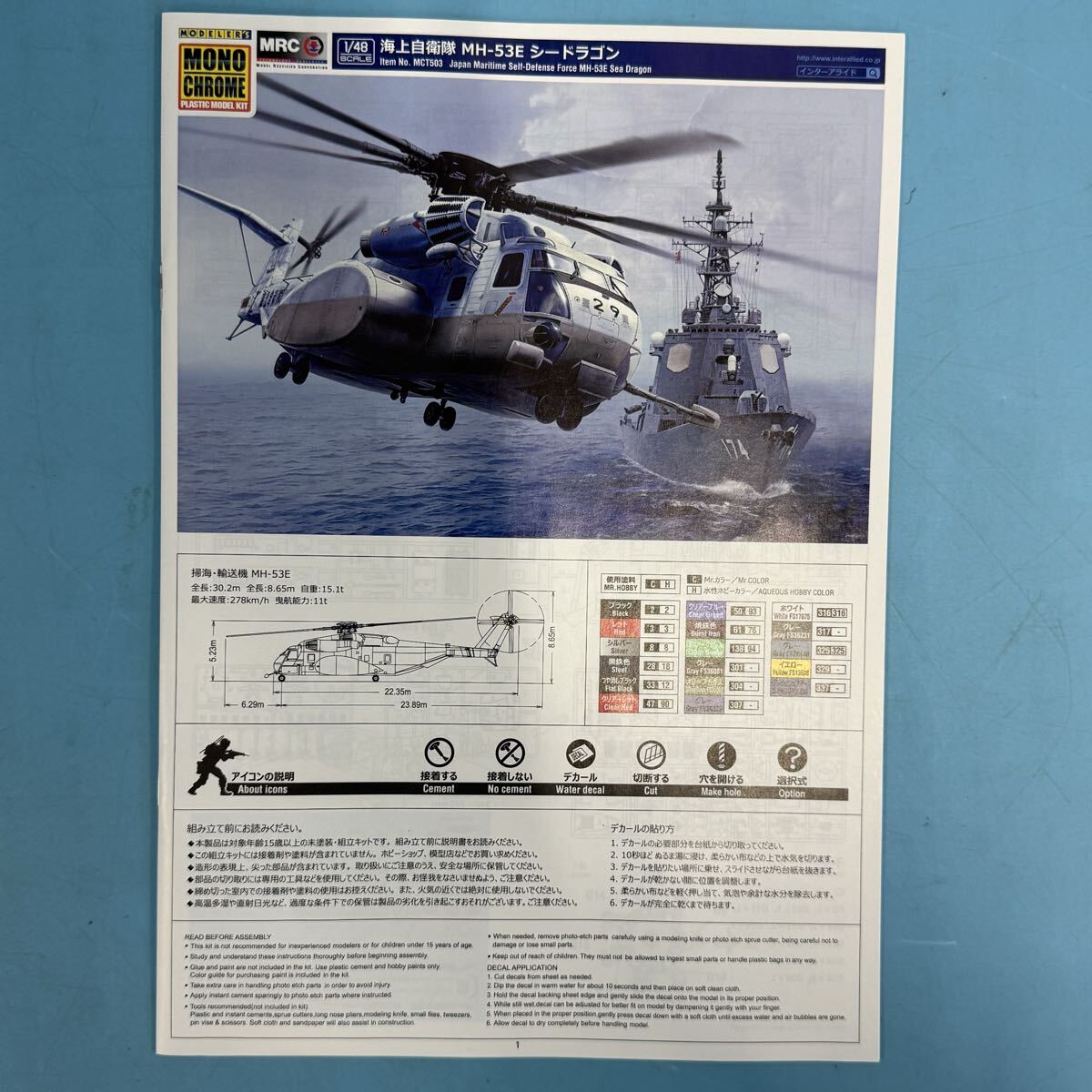 【C94-10】未組立 プラモデル1/48 海上自衛隊 MH-53E シードラゴン [モノクローム]