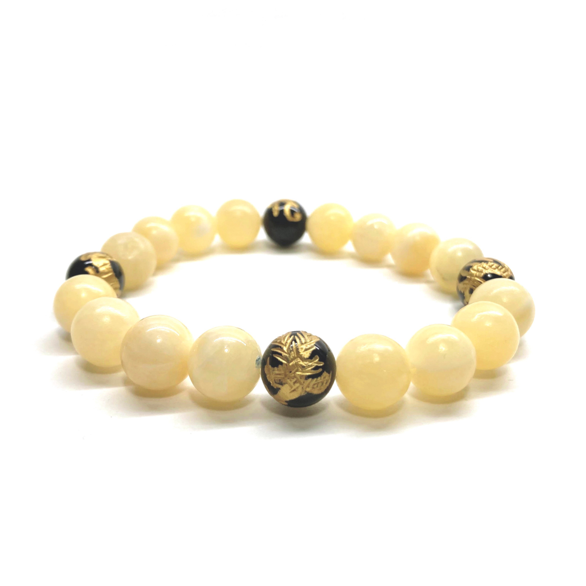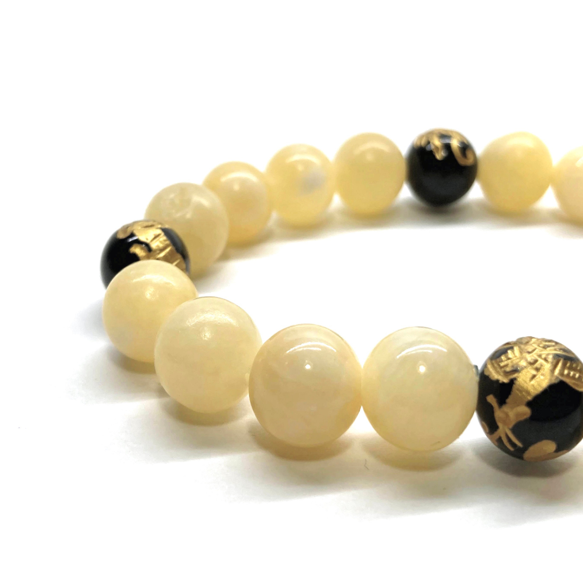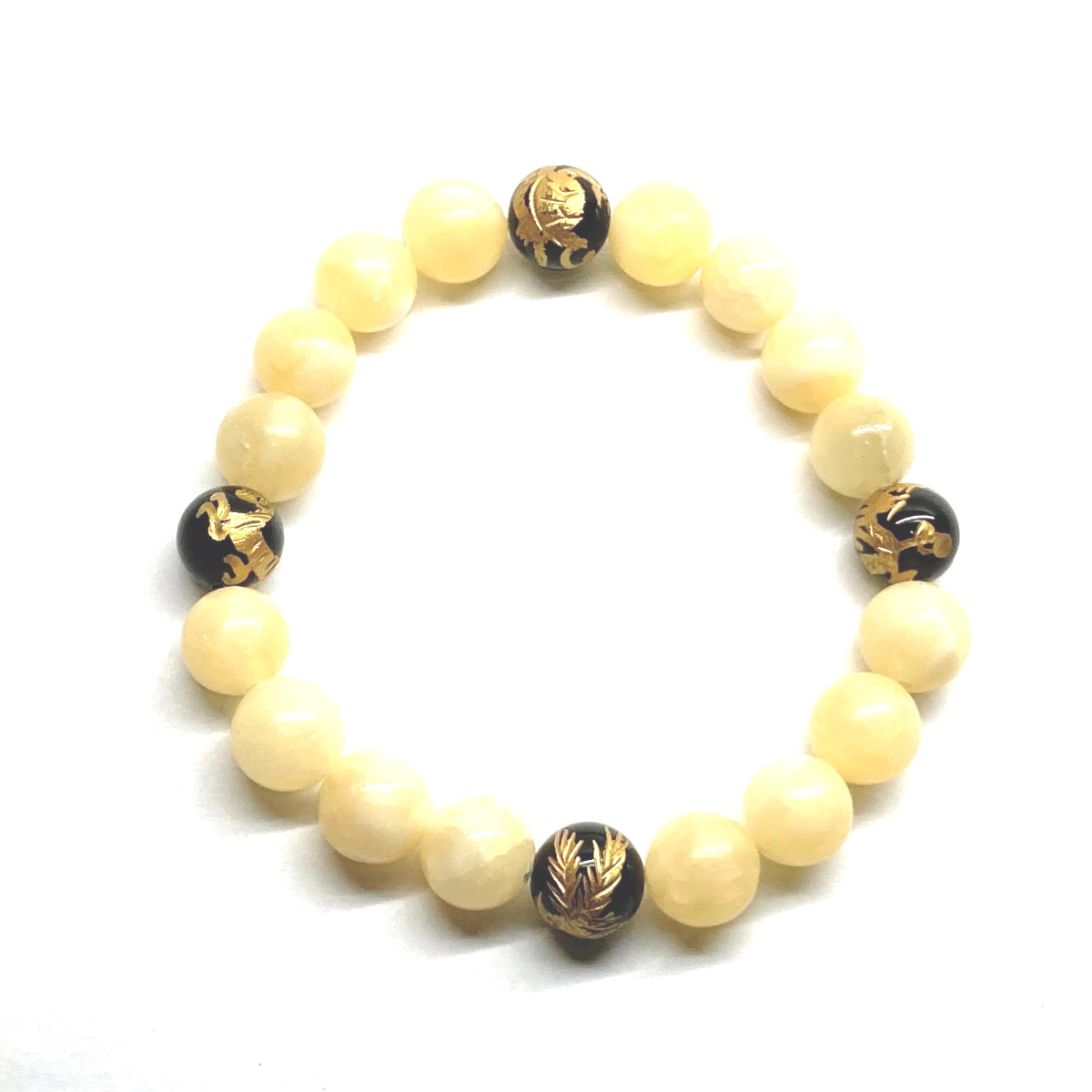 10mm 四神獣金彫オニキス×アラゴナイト パワーストーン ブレスレット天然石 運気上昇 開運 金運 恋愛 青龍 白虎 玄武 朱雀 ☆