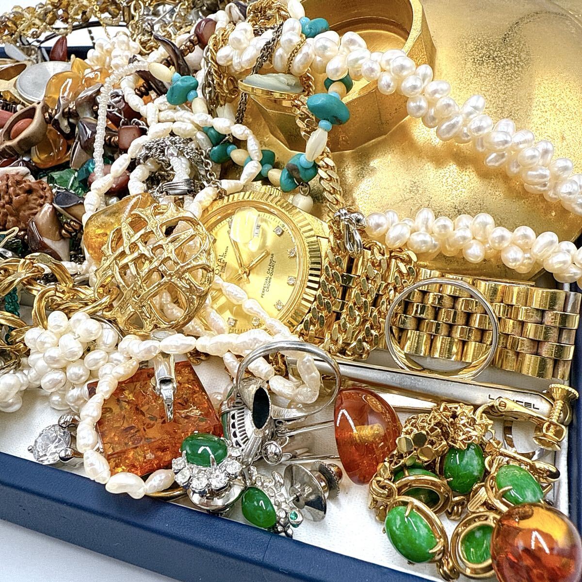 金メッキ 金盃 SV 925 シルバー イミテーション 水晶 真珠 淡水 ルビー 翡翠 琥珀 天然石 アクセサリー類 時計 メガネフレーム他 おまとめ