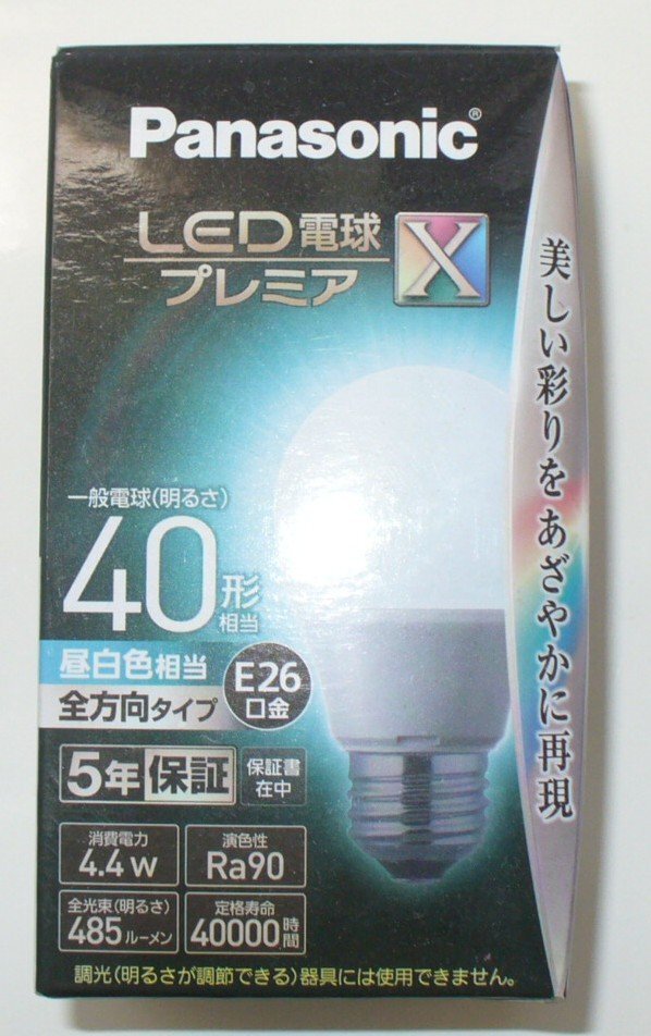 品名 | ★未使用品**Panasonic プレミアX LED電球 40形相当(LDA4N-D-G/S/Z4)昼白色相当 全方向タイプ ★光の広がり約260ディグリー ★未使用品ですが、パッケージに傷、痛みなどがございます。 細かいことを気にになさる方のご入札をお断りいたします。 ★未使用のため、万が一、破損・不良品の場合、こちらでの責任は負いかねます。 万が一初期不良の場合は直接メーカーへお問い合わせするようにお願いいたします。 |