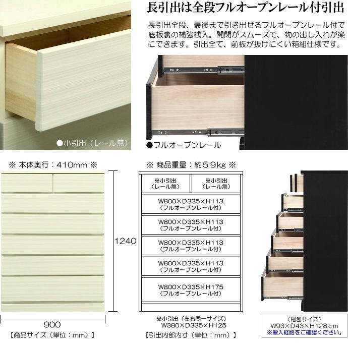 | 【材質】 | 引出表面:木目柄ハイグロスシート/天板・側板:強化シート化粧板・MDF | |
