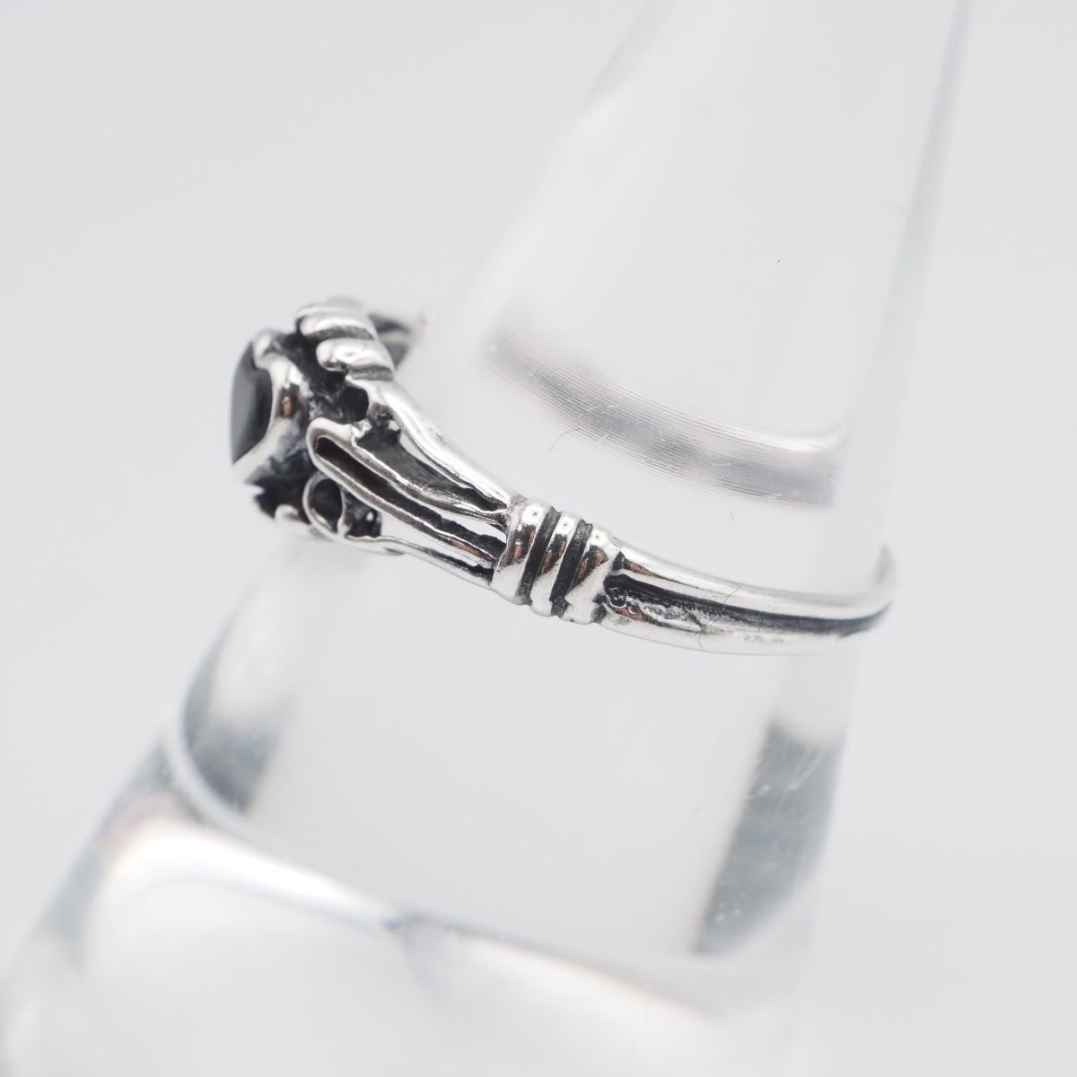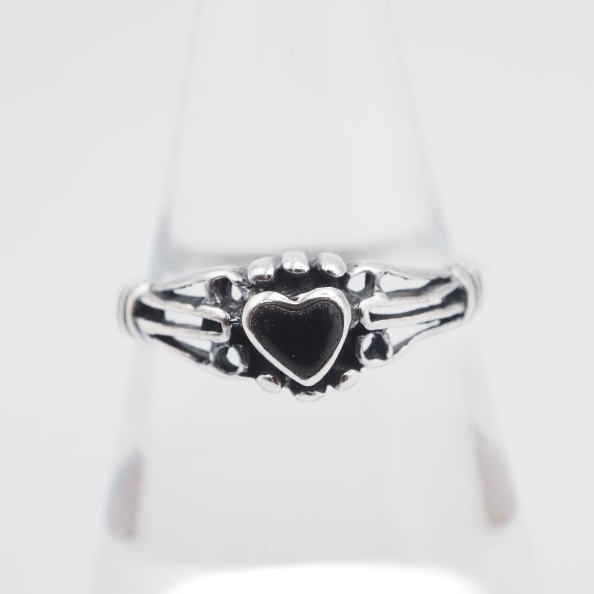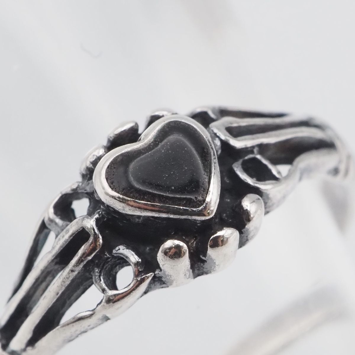 G016 オニキス風 925刻印 リング ハート インレイ デザイン シルバー 指輪 ヴィンテージ 12号