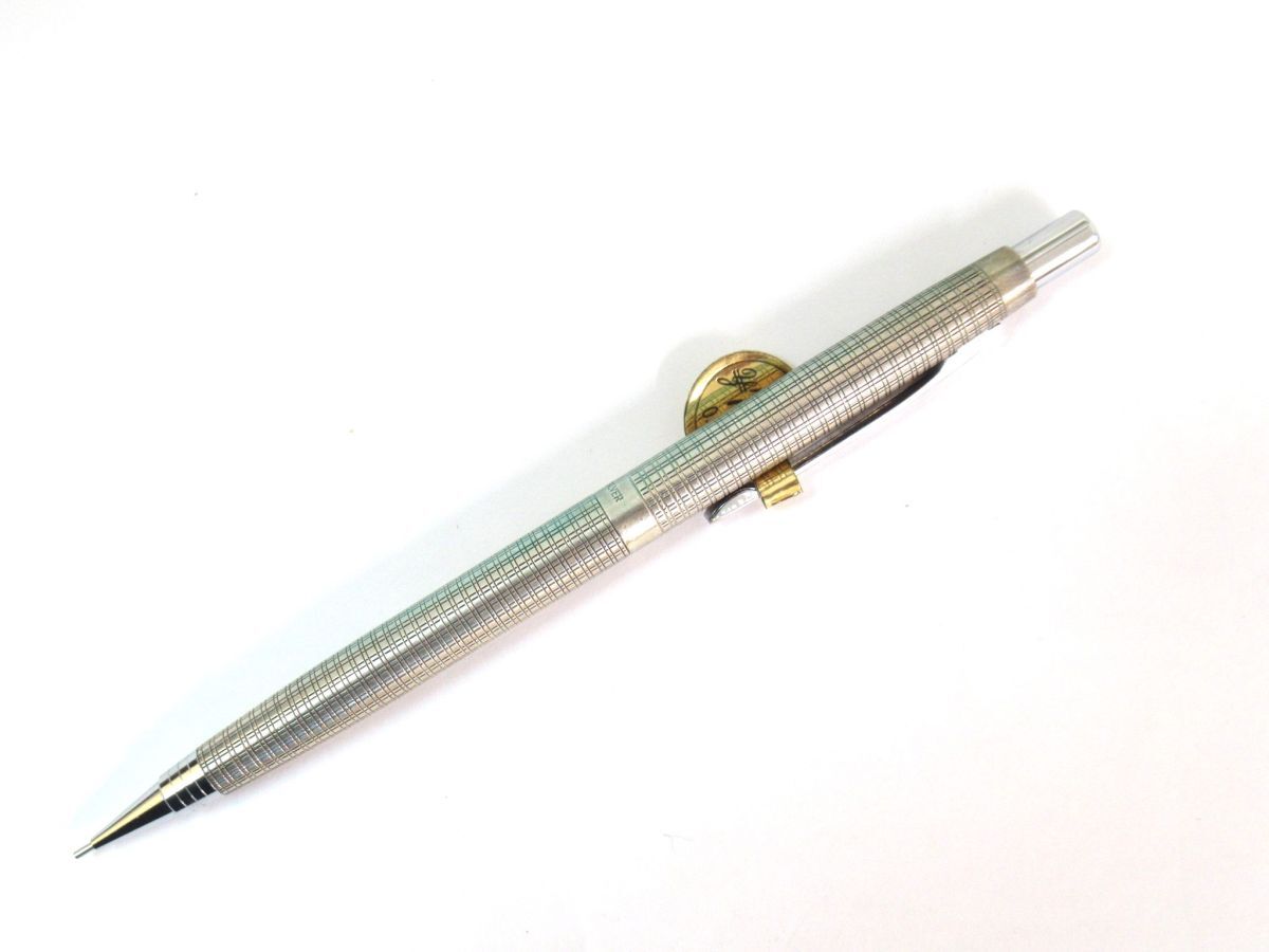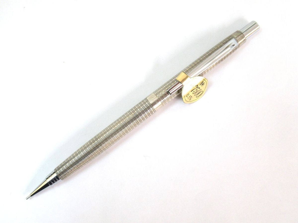 AN 5-4 長期保管品 PLATINUM プラチナ シャープペン スターリングシルバー STERLING SILVER 芯0.5mm 格子彫 廃版 筆記用具