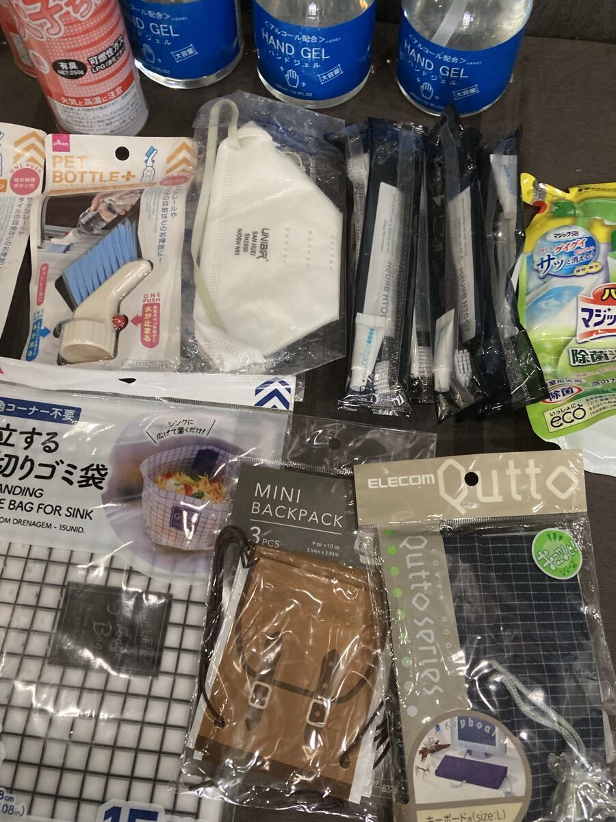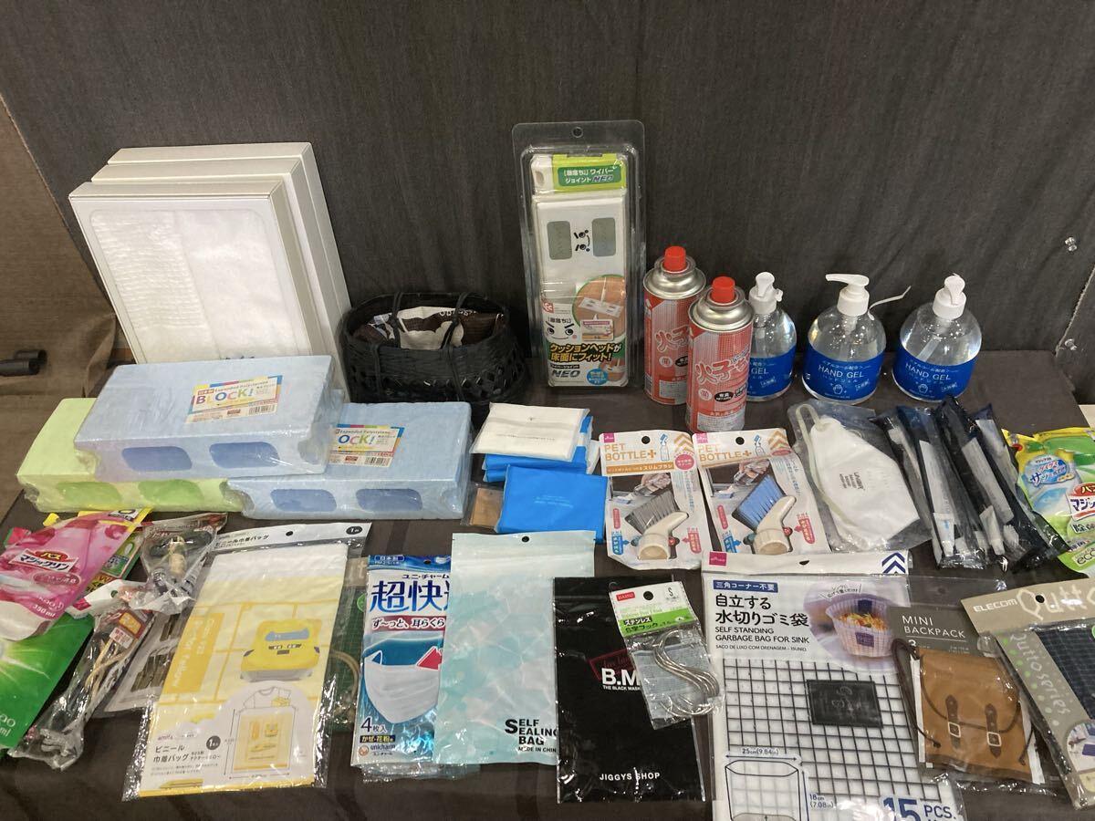 69【まとめ売り】日用品まとめ タオル激落くんワイパー ガスボンベ アルコール マスク 歯ブラシ 洗剤 S字フック ティッシュ 等