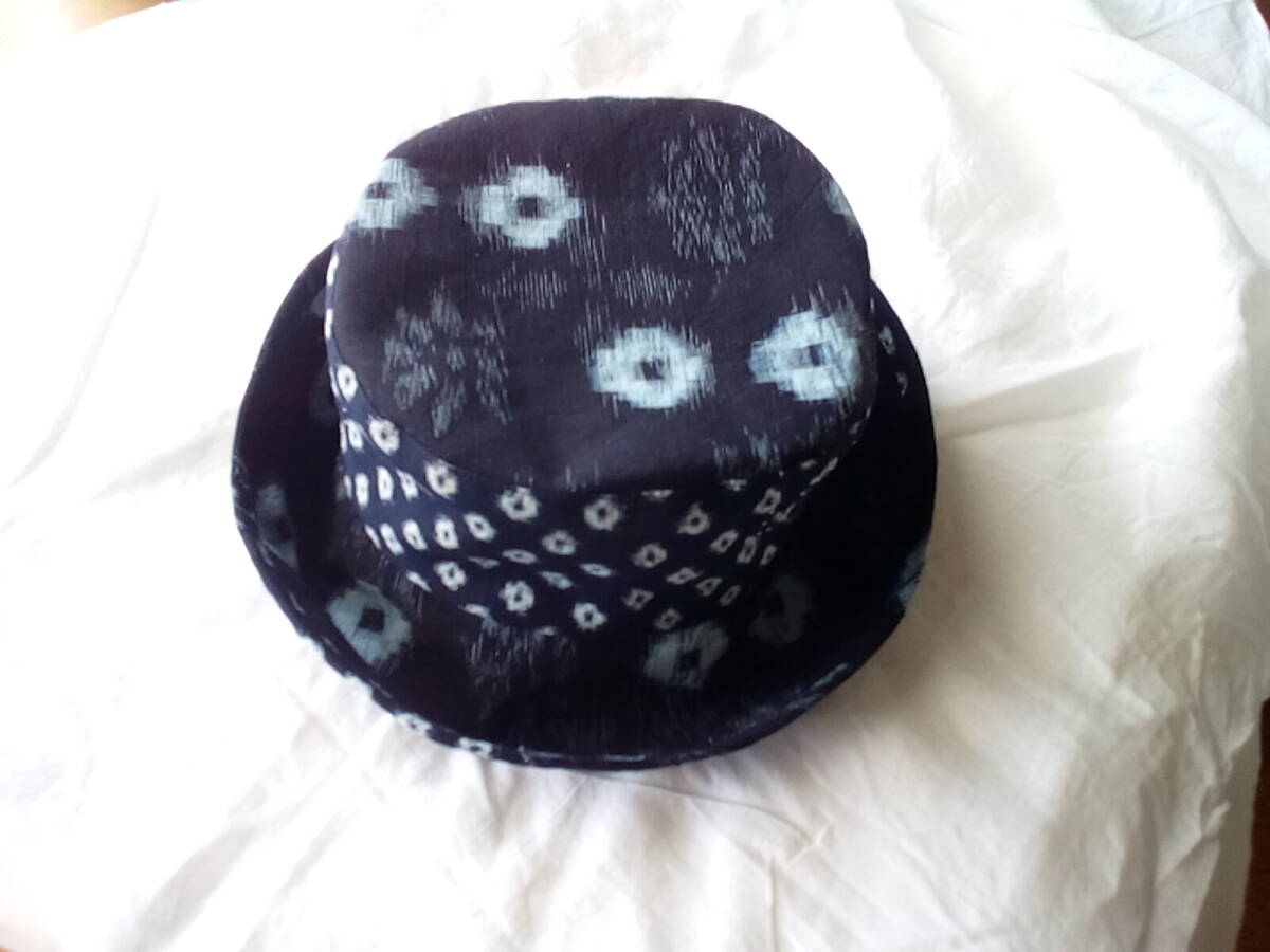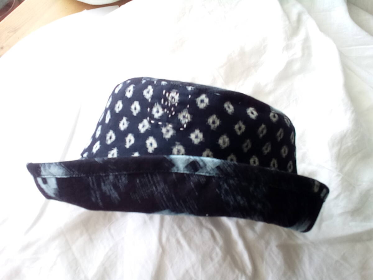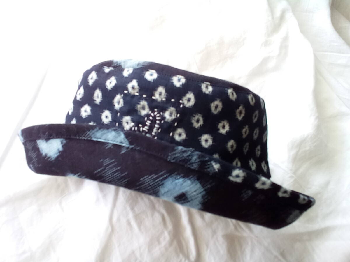 絣布を帽子作ってみました。ブリムはパイピングしています。 くったりと良い感じに出来た様に思います。