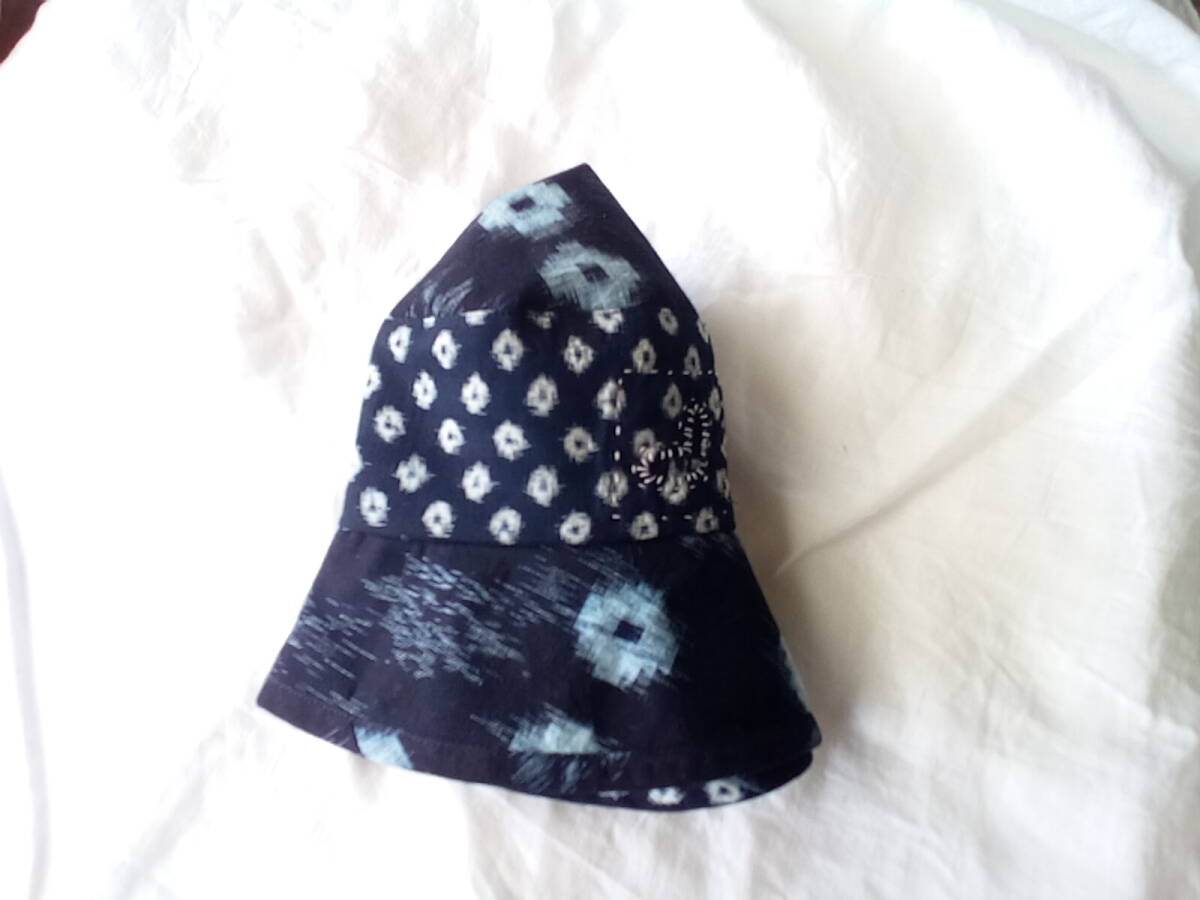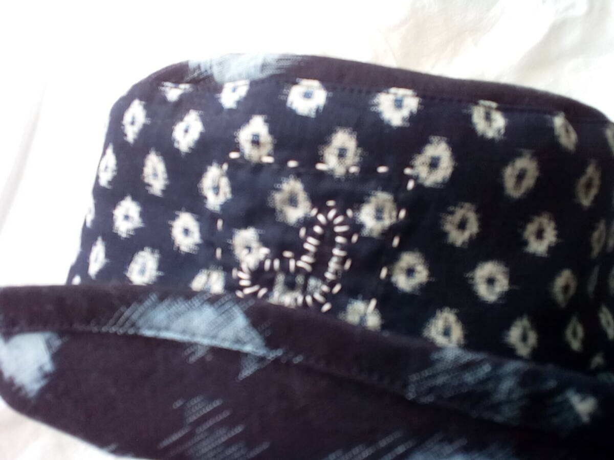 着物リメイク  藍染 木綿 絣 少し刺し子 秋冬春用 くったり ゆったり 帽子