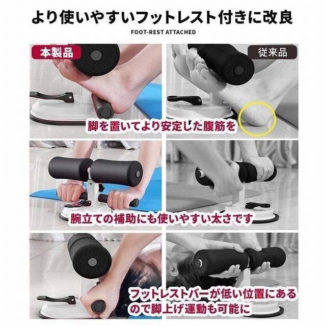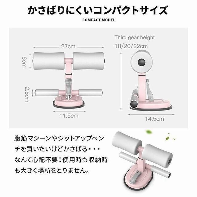 商品説明 腹部のトレーニングに適したシットアップマシン。 腹筋だけでなく腕立て伏せ、脚上げなども可能で効果的に腹部を鍛える事が出来ます。 省スペースなので設置場所を選ばず、本格的なトレーニングマシンの設置が難しい部屋でも便利。 使い方も簡単で溝等のない平らな床に置き、レバーを下げると吸盤が密着し床に固定出来ます。