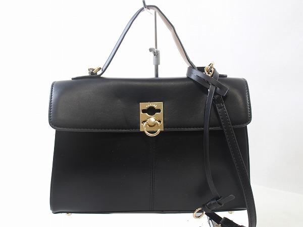1円 CAFUNE カフネ ★ 2way ハンドバッグ ショルダーバッグ ★ ブラック レザー SK14