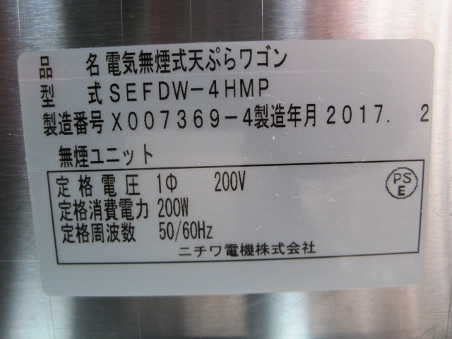 商品名 | 【ニチワ】【業務用】【中古】 電気フライヤー SEFDW-4HMP**** 単相200V |