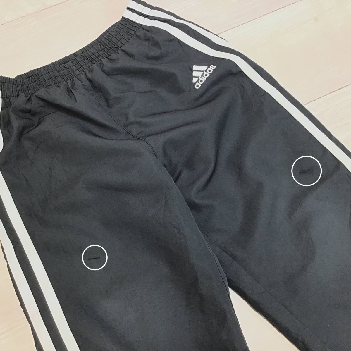 合計落札金額¥8,000円以上で、、、 送料無料!! ※こちらからの[合計支払い金額通知]をご確認の上、お支払い下さい♪ -------------------------------- 【 adidas アディダス 】 刺繍ロゴ メッシュライナー付 サイドライン シャカシャカパンツ ● USA輸入・正規品 ● ● 海外サイズ規格 ● ● ポケット( 左右:無・ヒップ:無 )● -------------------------------------------------------- ◆ ◆ 商品説明 ◆ ◆ 両膝上にダメージ、 両膝に軽微なスレ、 背面側両裾にダメージがあります。 ★adidas トラックパンツ★ adidas定番&人気のサイド3ストライプデザイン☆ 内側はメッシュライナーが付いていて、 着用時の蒸れを軽減し、快適な履き心地 ♪ シンプルなデザインで使い勝手の良い お薦めアイテムですので是非この機会に! -------------------------------------------------------- ◆◆サイズ◆◆ ユース 4T 110 ※実寸をご確認の上、ご検討をお願いいたします。 ウエスト:23cm 股上:22cm 股下:40cm ワタリ幅:21cm 裾幅:17cm ※全て平置き時のサイズです。 素人採寸の為、多少の誤差はご了承いただけますよう、お願いいたします。 -------------------------------------------------------- ◆ ◆ 素材表記 ◆ ◆ ポリエステル:100% ----------------- | |||||