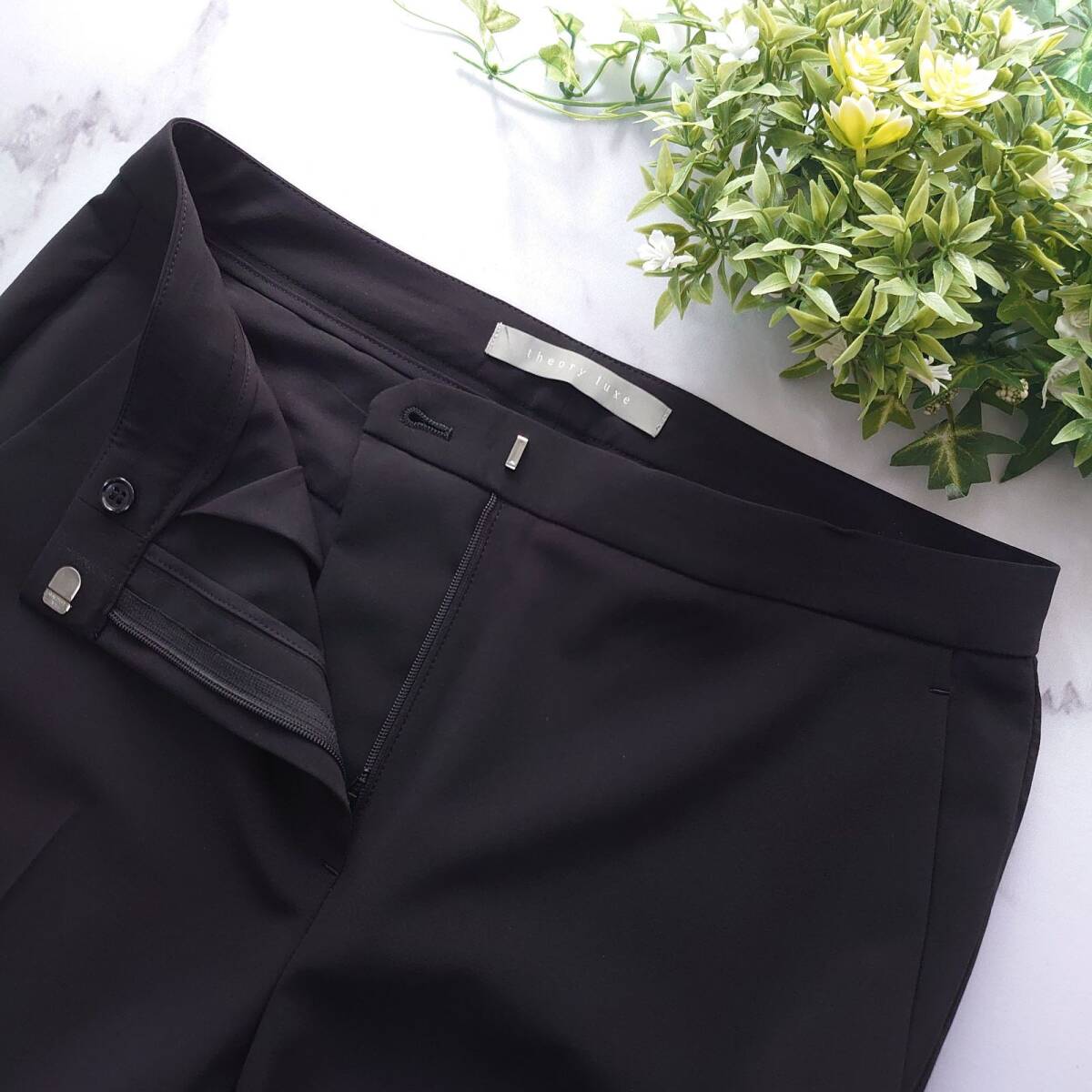 セオリーリュクス theory luxe Sycamore Akesh ストレッチ フレアパンツ ピンタック センタープレス サイズ40 L ボトムス 黒 ブラック レディース