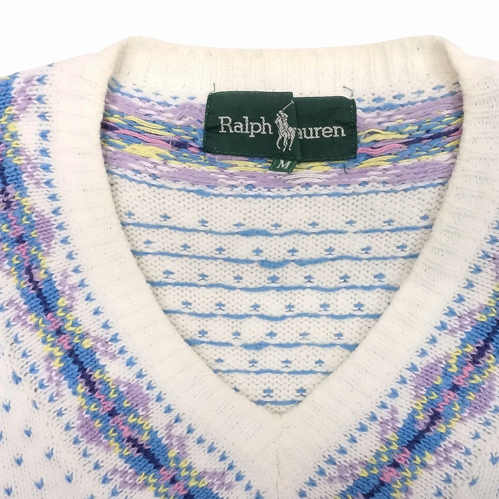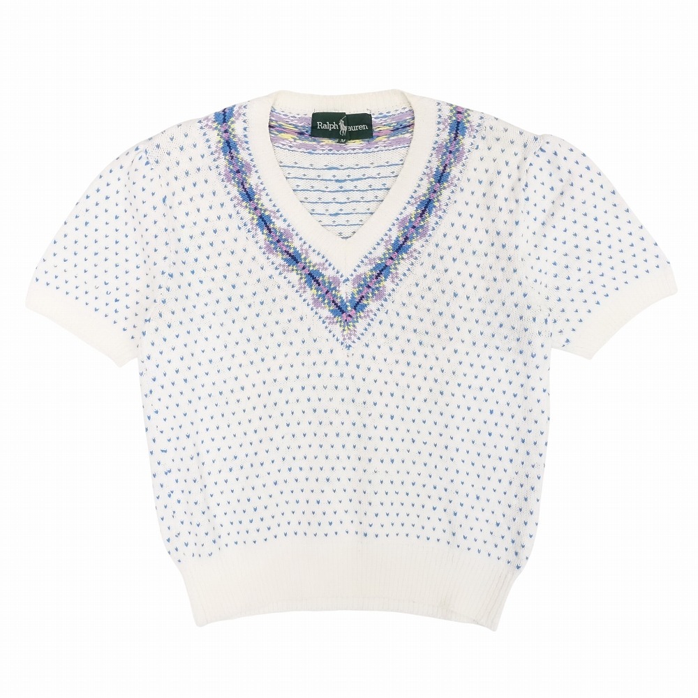 | 【80s Vintage Ralph Lauren ラルフローレン バーズアイ柄 ニット セーター Vネック 半袖 トップス M 白 レディース】 | |