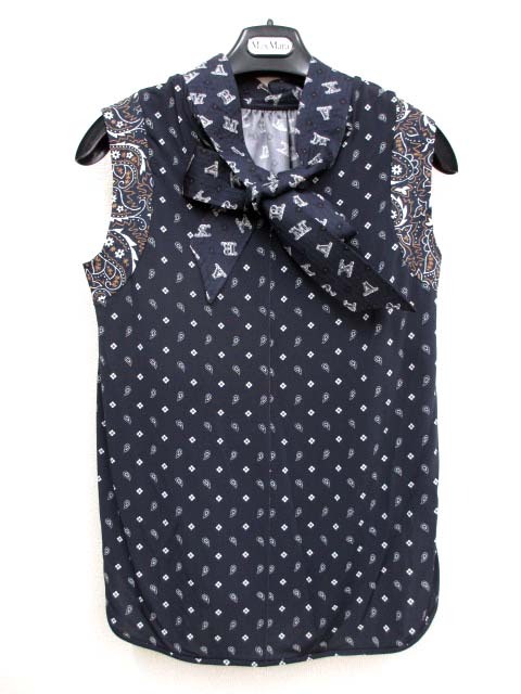 【Y】マックスマーラ 22SS Mロゴ ペイズリー シルク ボウタイブラウス