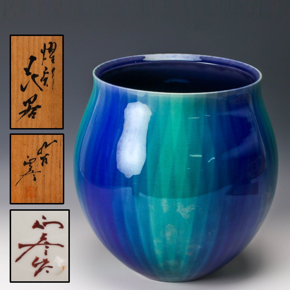 【佳香】人間国宝 三代 徳田八十吉 燿彩花器 壷 共箱 本物保証