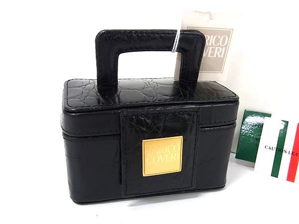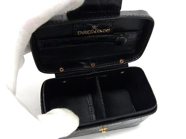 ■極美品■ ENRICO COVERI エンリココベリ クロコダイル型押しレザー アクセサリーケース ジュエリーボックス ブラック系 DK6792