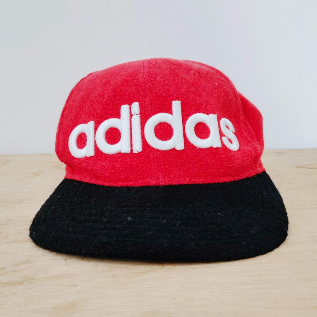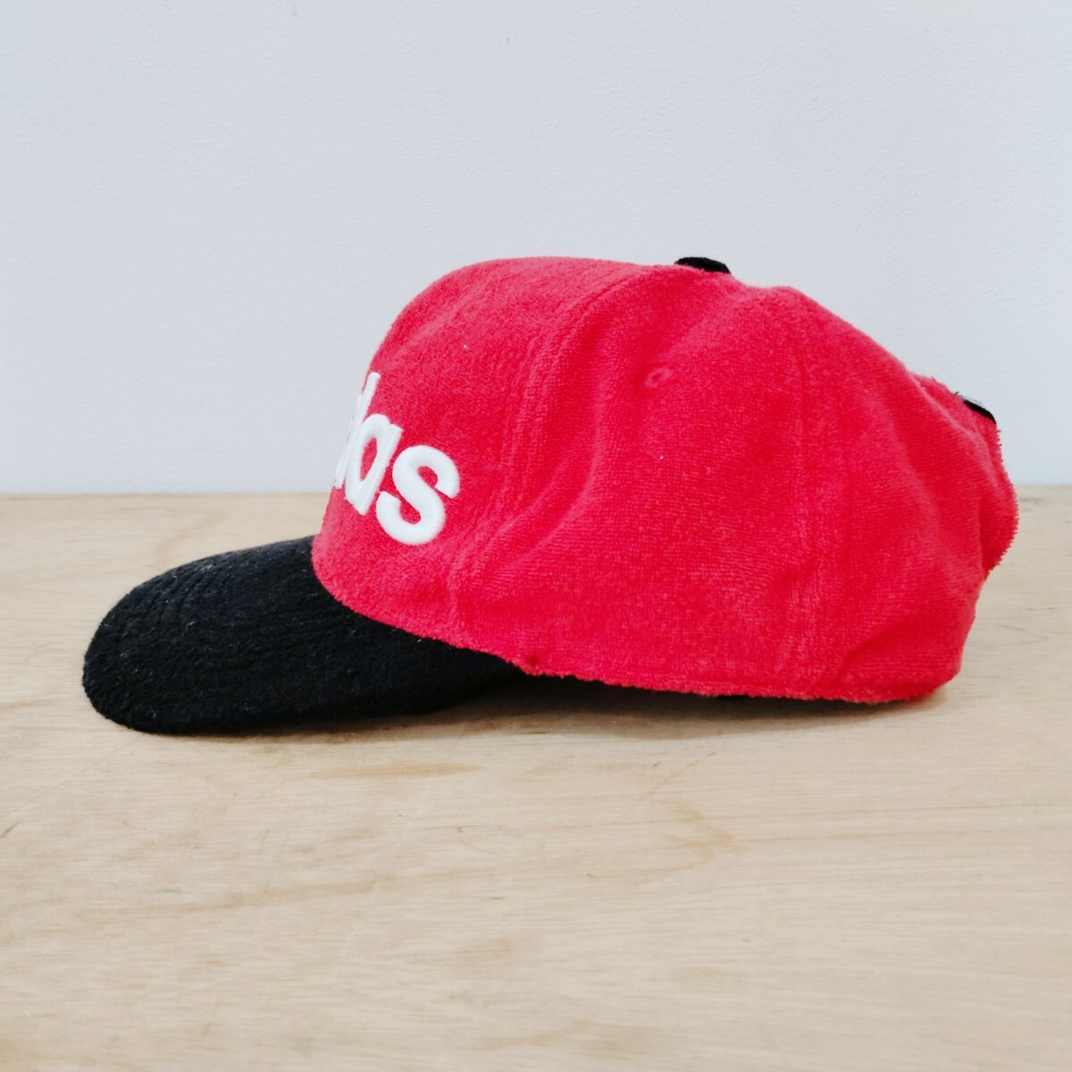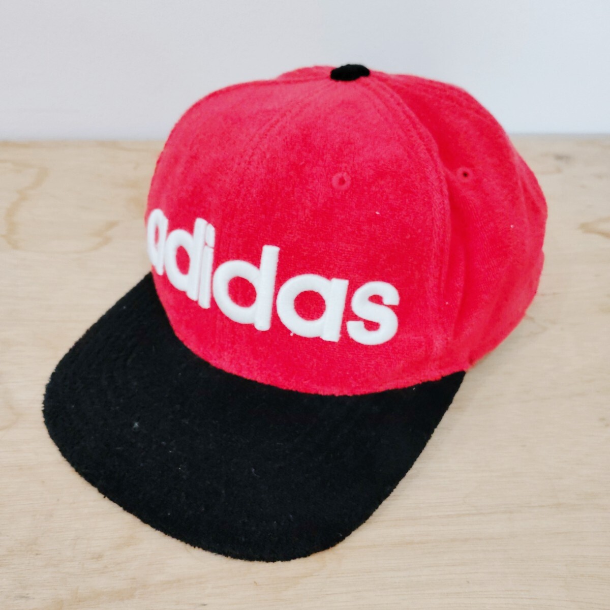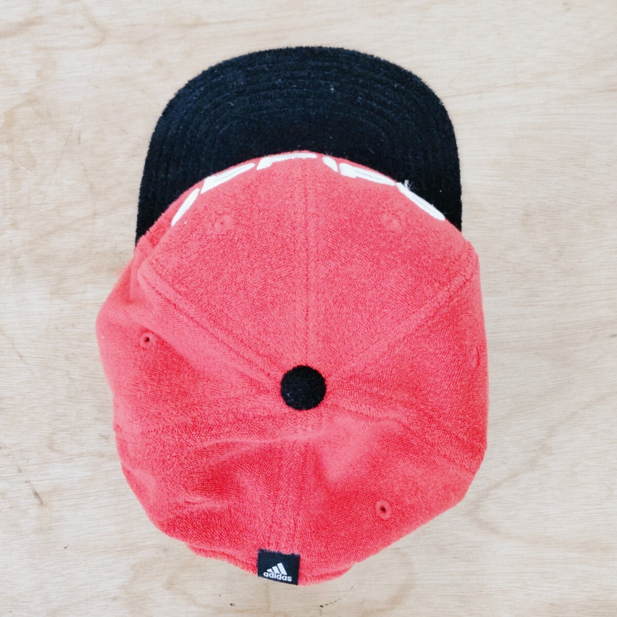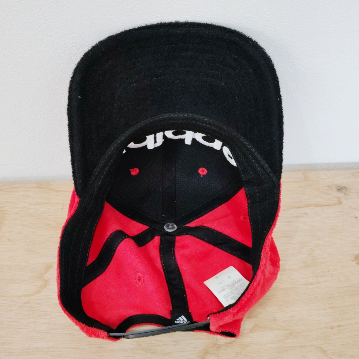 れ/adidas  キャップ 帽子 フリーサイズ 57〜60cm 綿100% もこもこ 赤