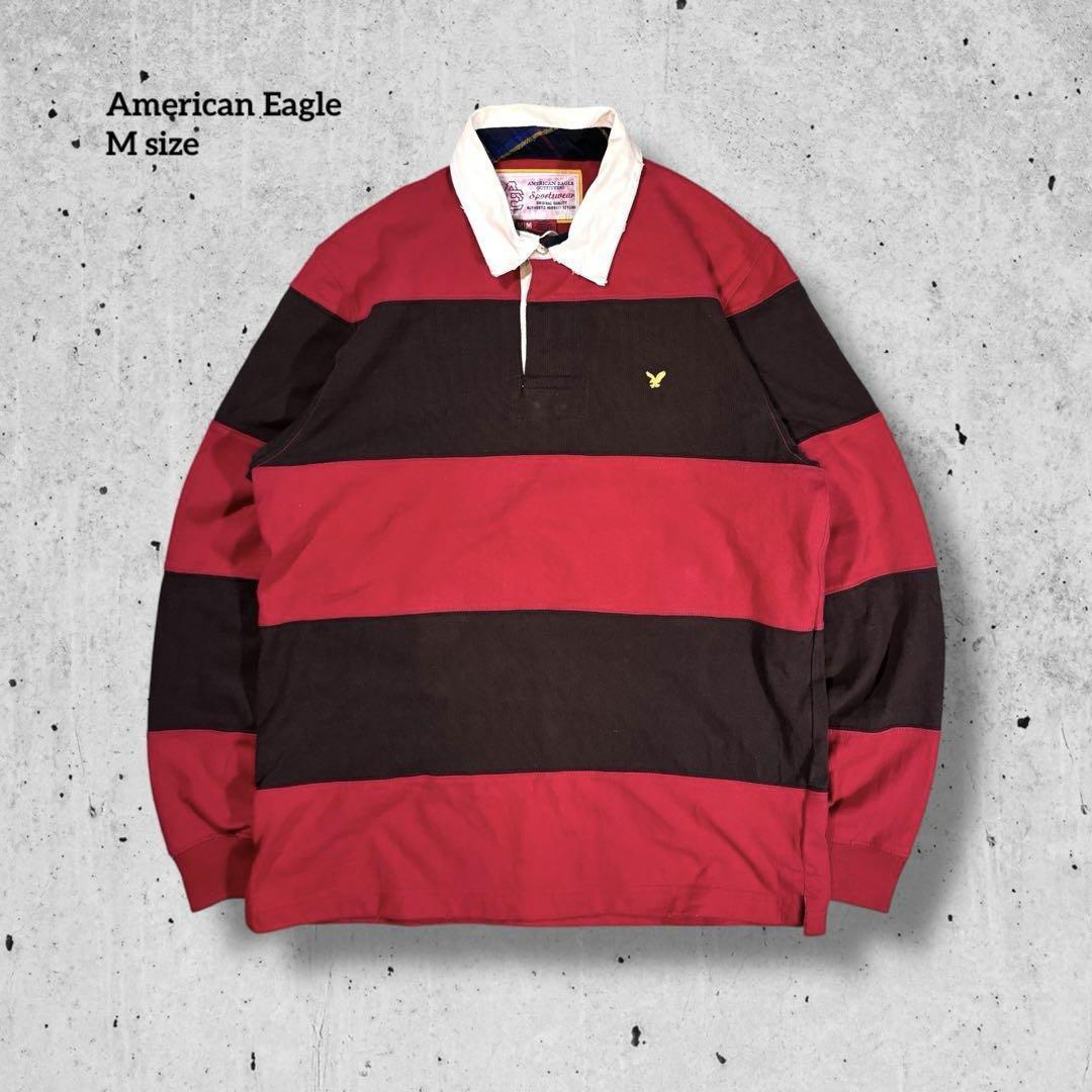 ★アメリカンイーグル ラガーシャツ ボーダー 赤×ダークブラウン★