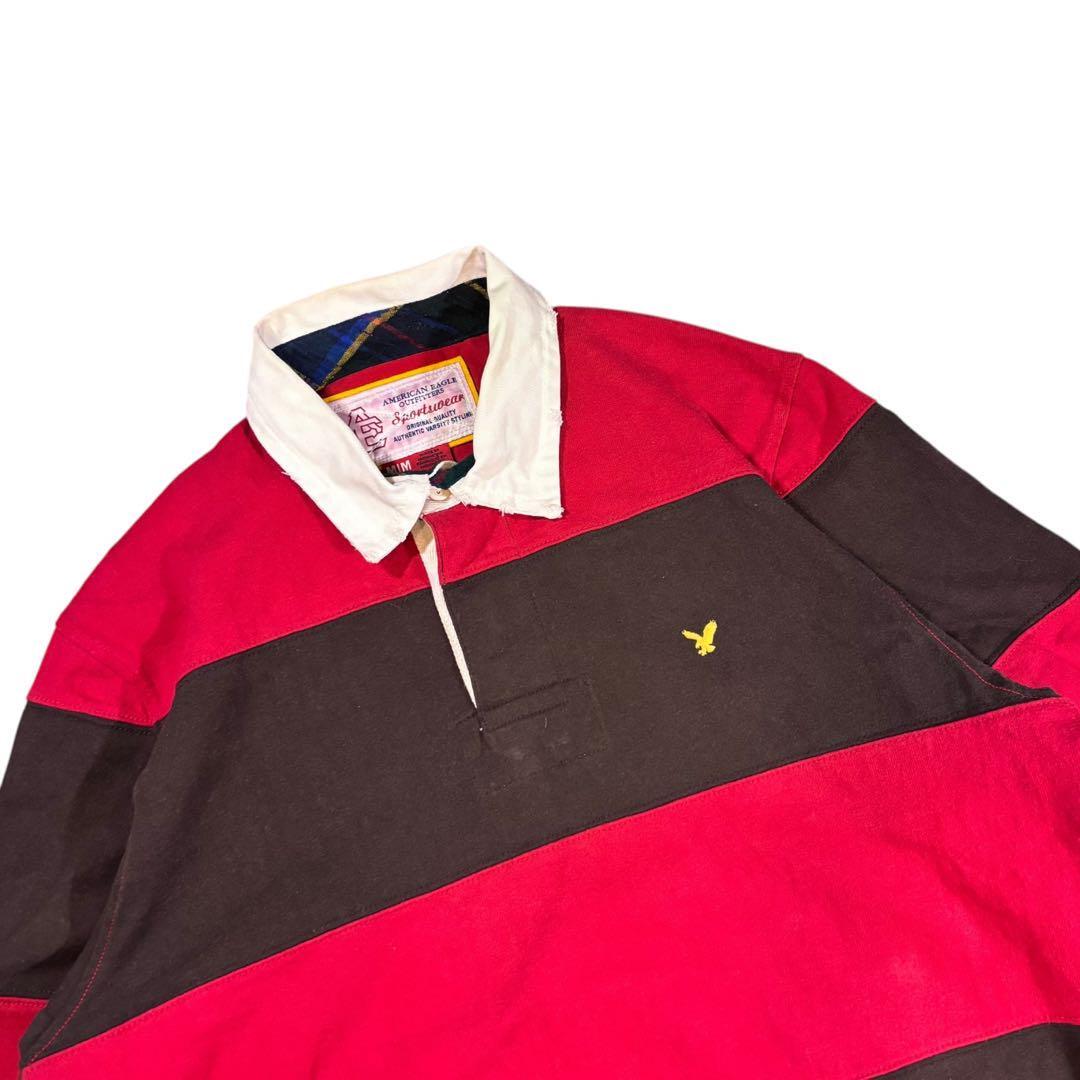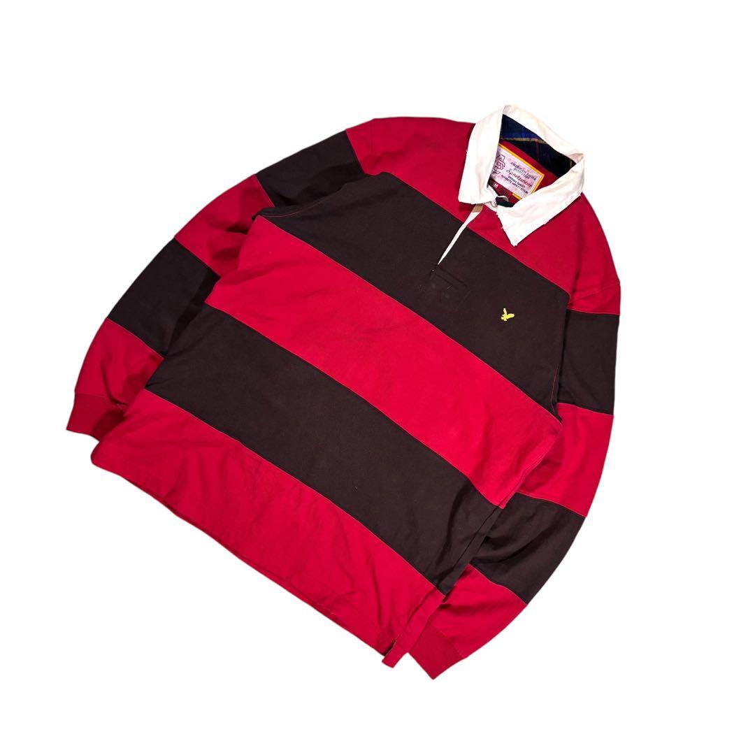 ビビッドな赤とダークブラウンの太ボーダーが存在感抜群なラガーシャツ。襟裏のタータンチェックや刺繍ロゴなど、ディテールにもこだわりが詰まった一枚です。ゆったりとしたシルエットと厚みのあるしっかりした生地感で、ストリートやアメカジスタイルにおすすめ。レイヤードにも映えるカラーで、古着コーデの主役に!