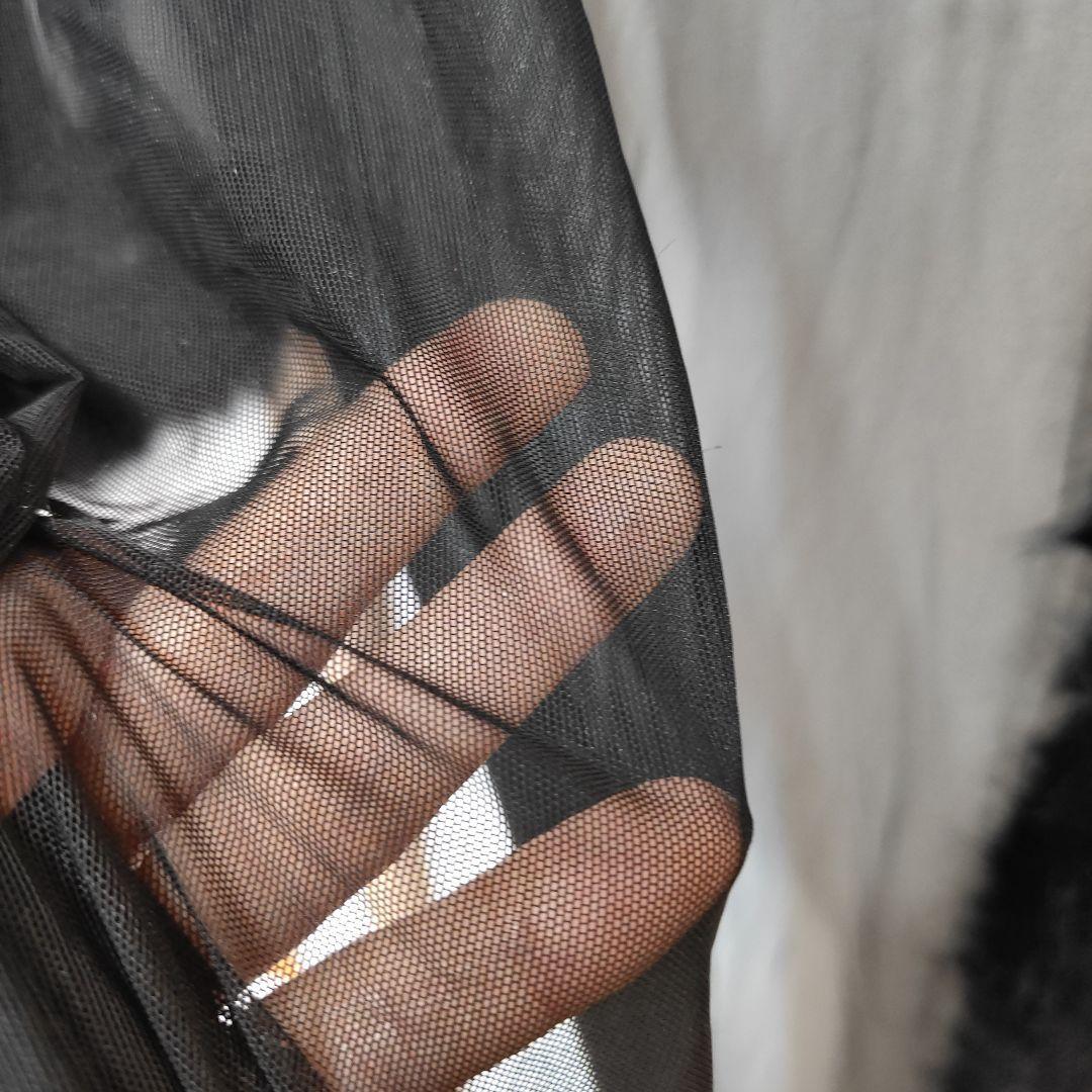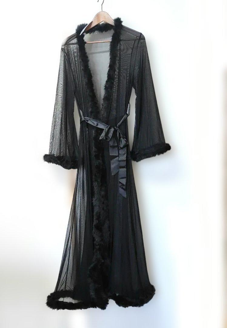ナイトガウン シースルーブラック ペプラム袖 袖口襟前立裾フェイクファー裾広がり