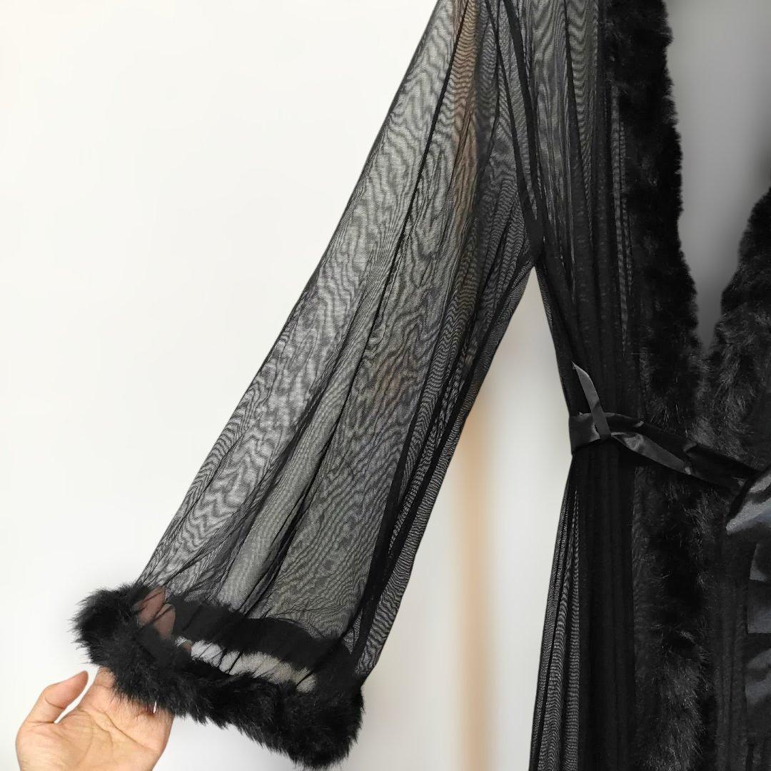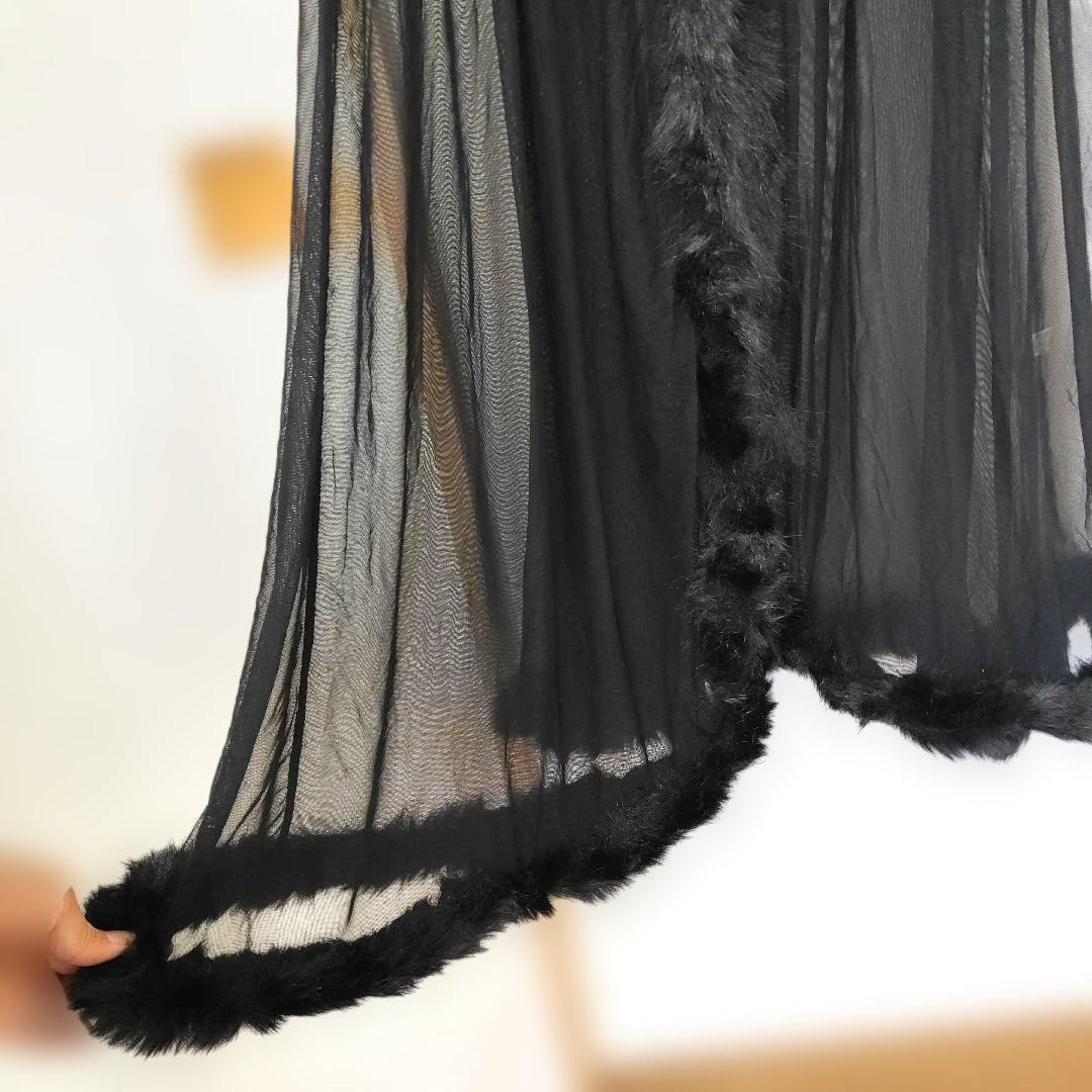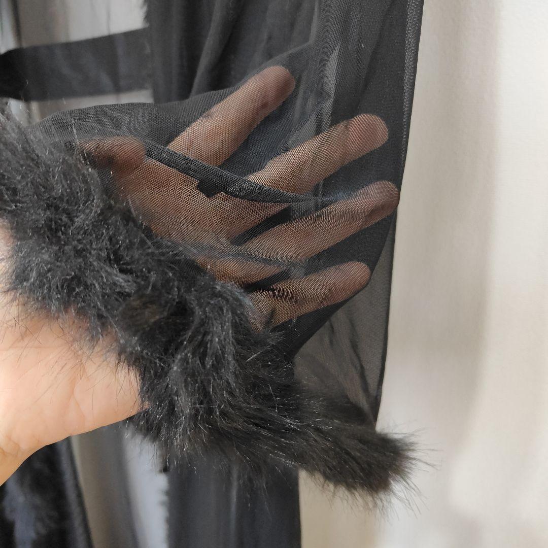 ナイトガウン シースルーブラック ペプラム袖 袖口襟前立裾フェイクファー裾広がり