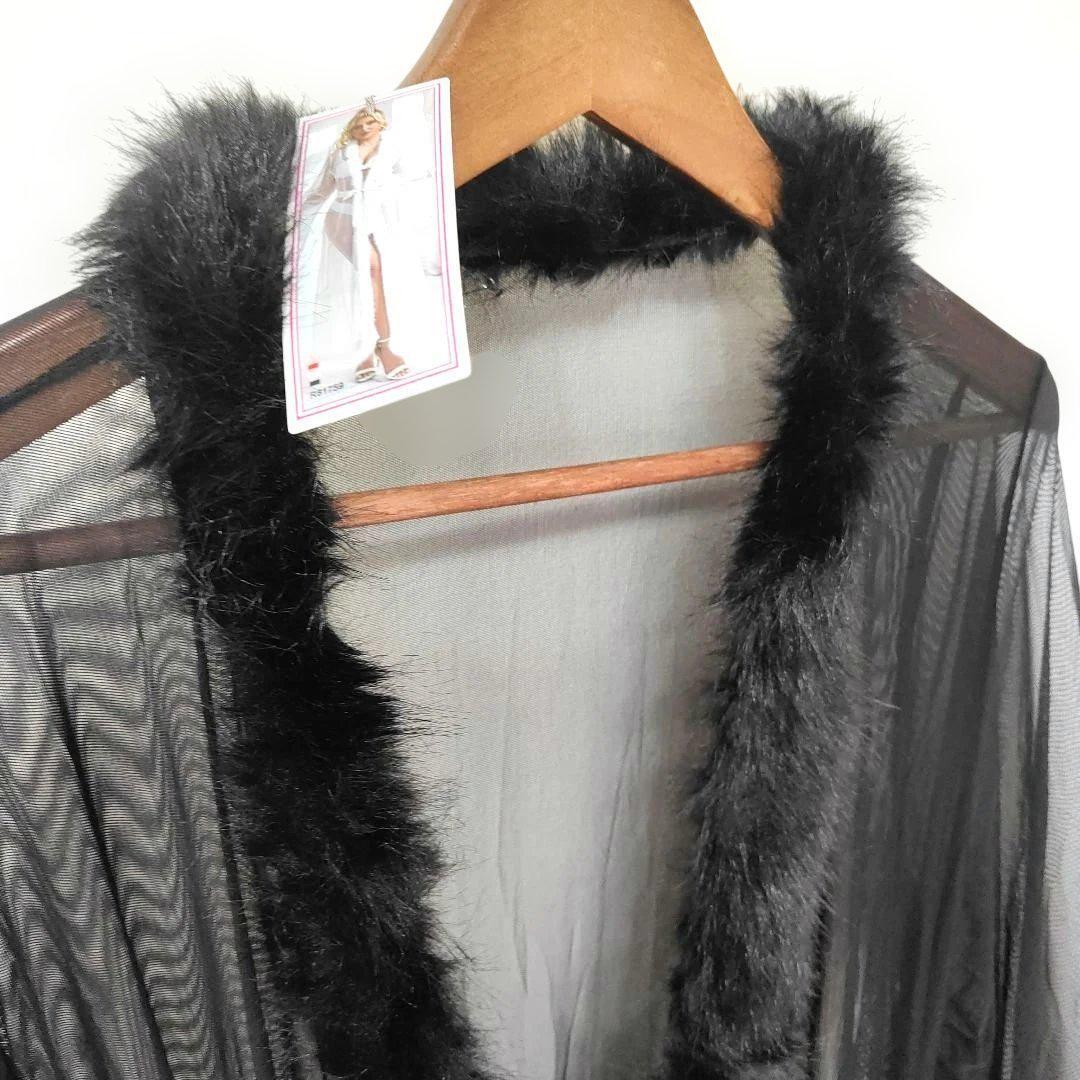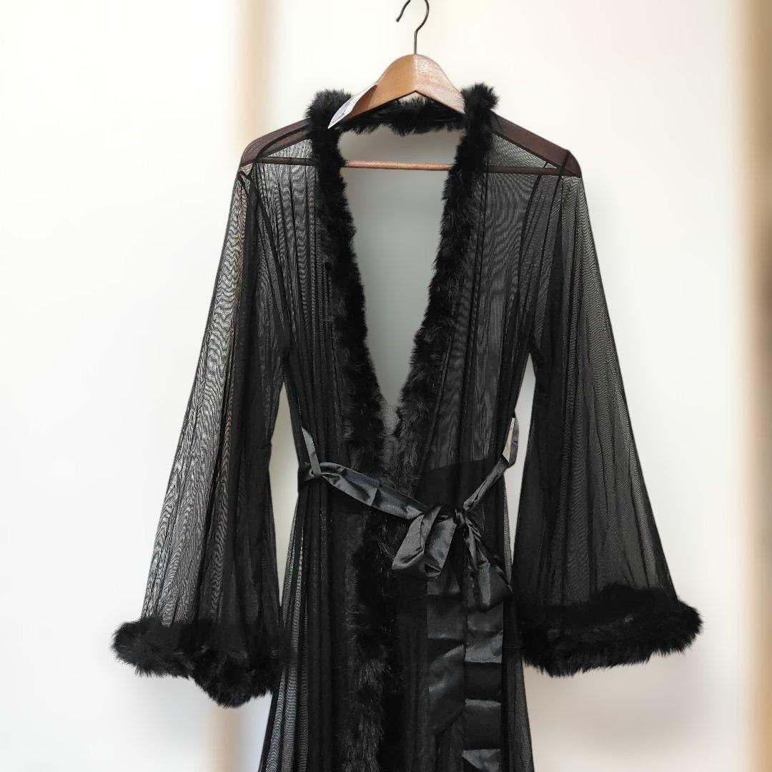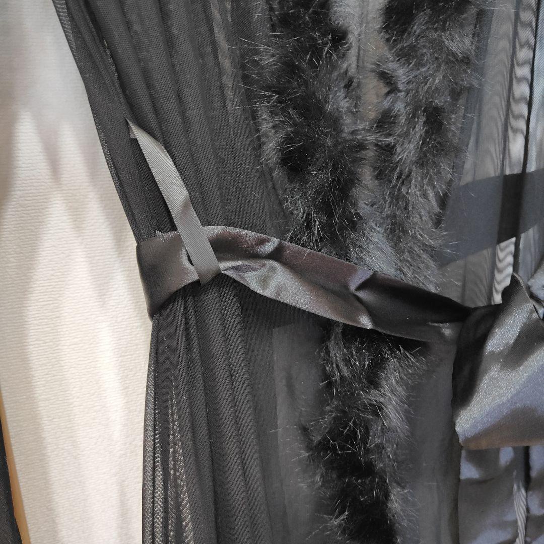 ナイトガウン シースルーブラック ペプラム袖 袖口襟前立裾フェイクファー裾広がり