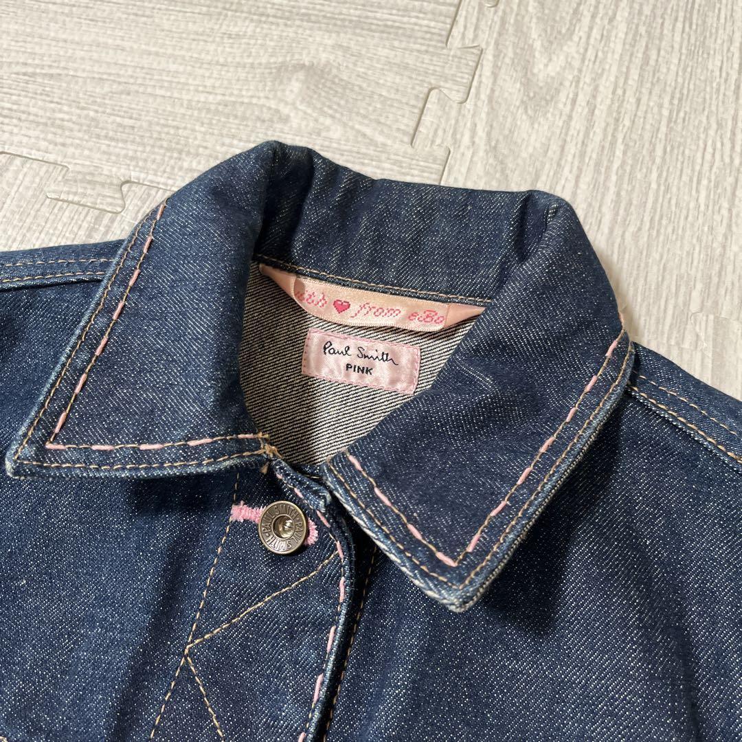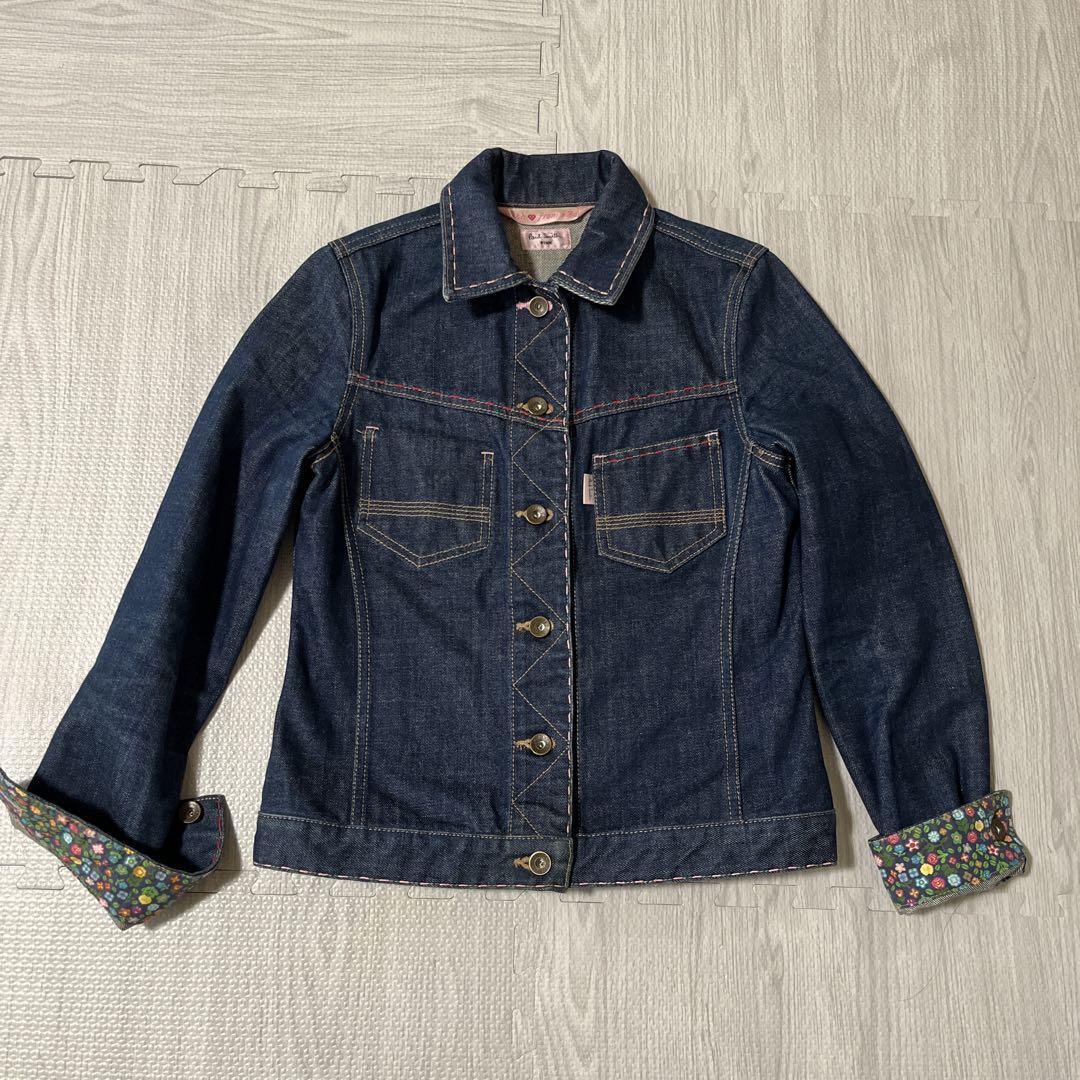 ポールスミス Paul Smith pink ポールスミスピンク デニムジャケット ジージャン 花柄 スタンドカラー オンワード樫山 ブルー インディゴ 42 Lサイズ ステッチ