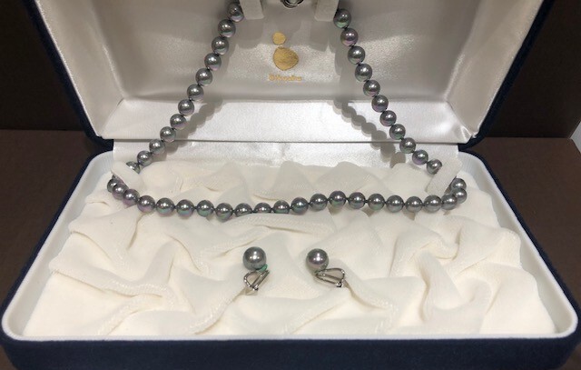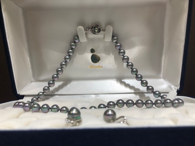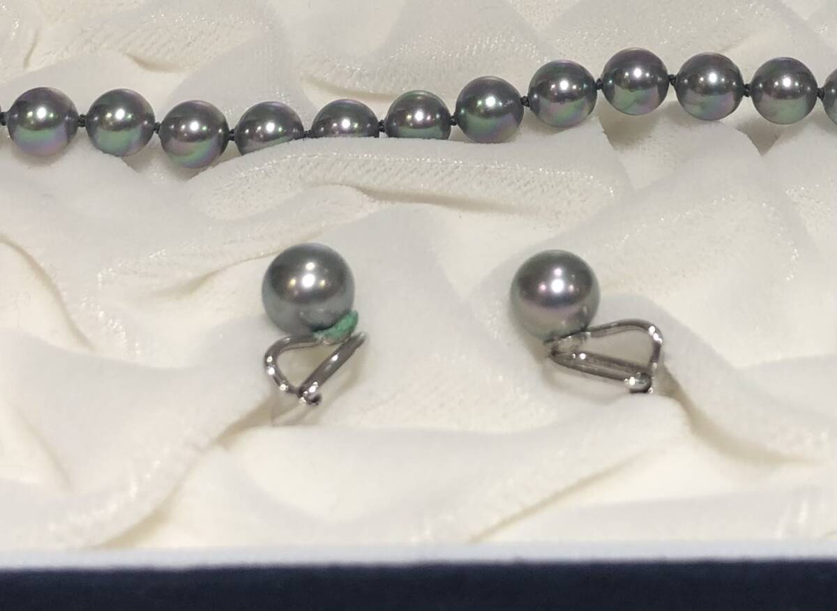 【商品名】#9547A 黒真珠 ブラックパール パール ネックレス イヤリング セット真珠 パール粒:約7mm~8mm 総重量:約28.5g