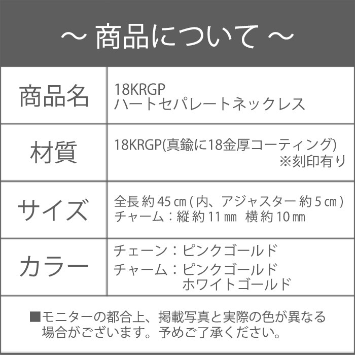 新品/ネックレス/18KRGP/ハート/セパレート/18金/K18/レディース/ピンクゴールド/チェーン/メタル/リバーシブル/シンプル/女性