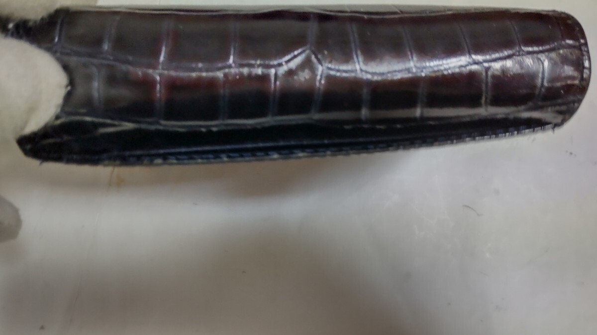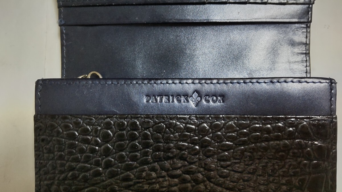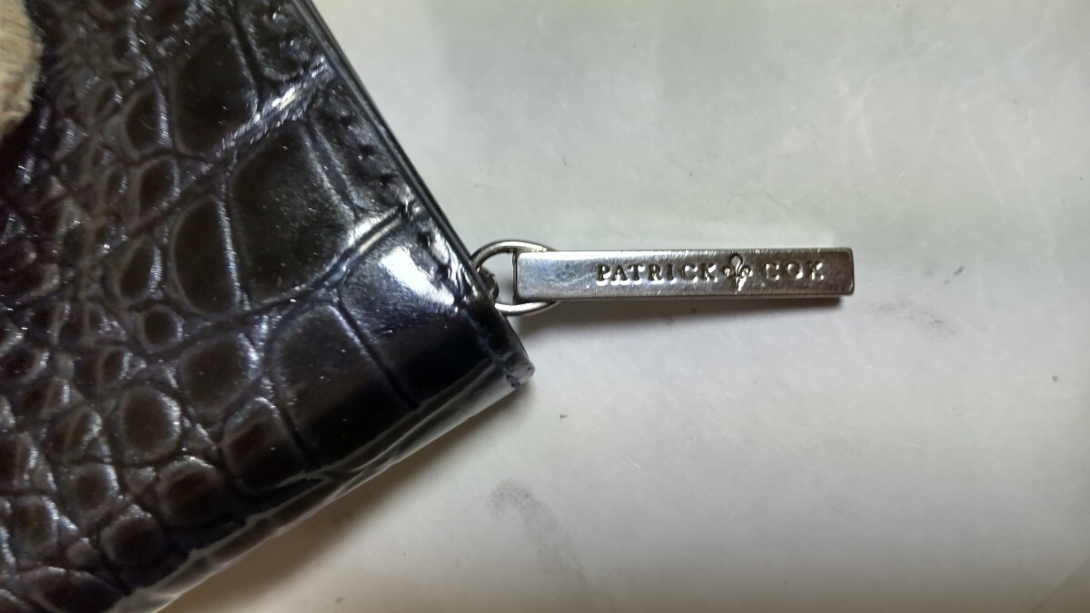 コメント:イギリスの人気ブランド PATRICK COX パトリック コックス の財布です。高級感が溢れるクロコダイル型押しレザーを使用して、傷や汚れ付きにくいエナメル加工を施して、収納力が抜群のアイテムです。外側か目立っ傷や汚れはないですが、小銭入れの内側生地に破れがあります(画像10を確認して下さい)