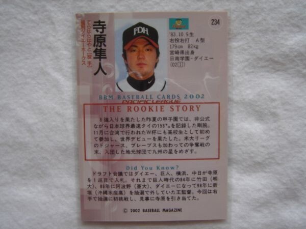 【BBM プロ野球カード 2002】No.234 寺原隼人 福岡ダイエーホークス【トレーディングカード トレカ ベースボールマガジン社 ルーキー】