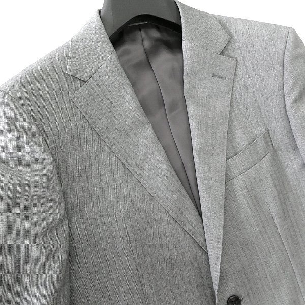新品 未使用 紙タグあり ※ハンガーは付属いたしません※ A6サイズ(標準体型のLサイズ相当) 胸囲94 胴囲82 身長175 ウエスト84 ※商品に記載されたサイズ・寸法です※ 【ジャケット】 肩幅44cm 身幅52cm 袖丈61.5cm 着丈72cm 【スラックス】 ウエスト84cm(内回り1周) 股上24.5cm 股下93cm 裾幅19.5cm 腿幅29.5cm(股下10cm部分) ※伸縮性のある素材の為、多少の誤差が生じる場合がございます※ 表地:毛100% 胴裏:キュプラ100% 袖裏:キュプラ100% 下衣裏地:ポリエステル100% グレー |