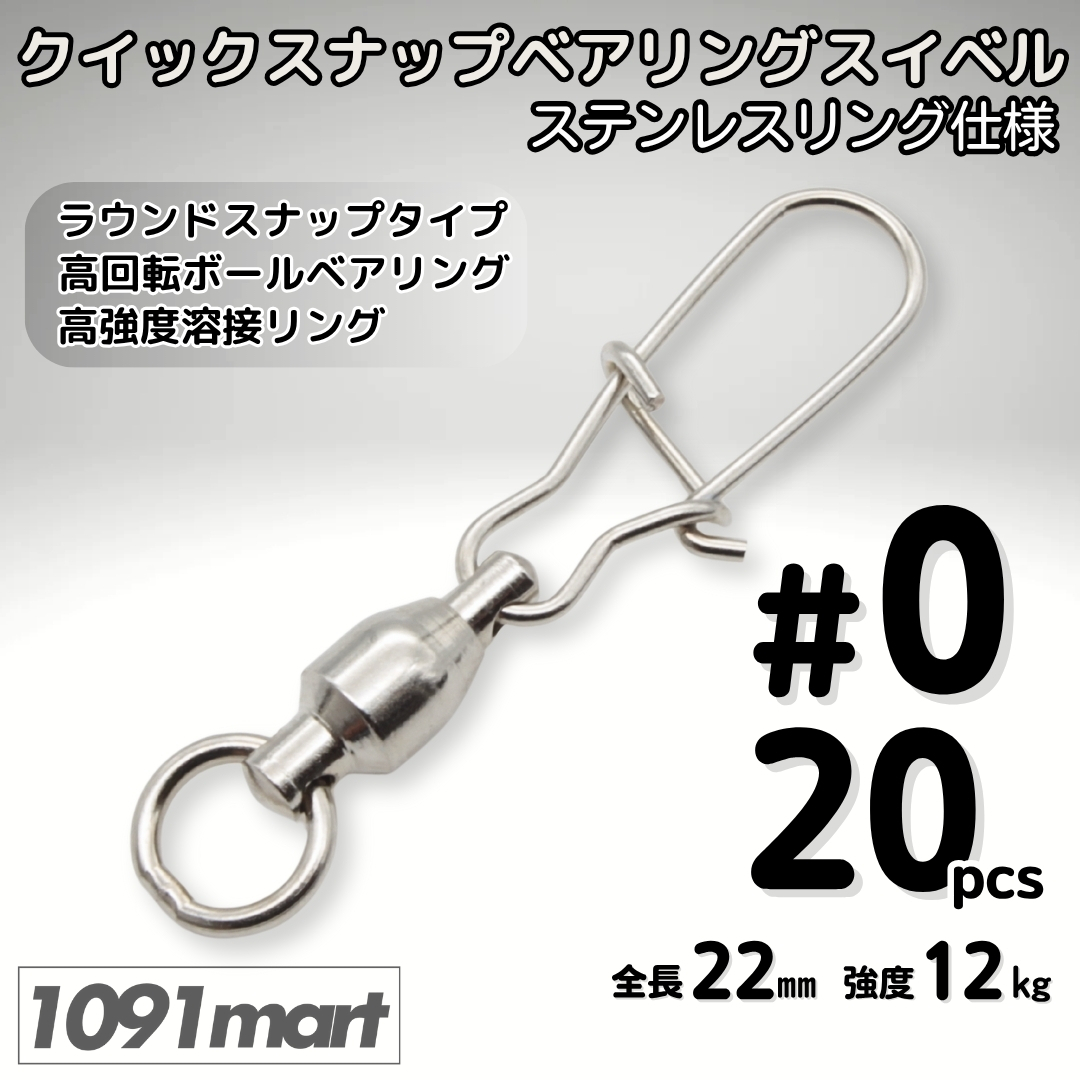 クイックスナップ ボールベアリング スイベル #0 20個セット ステンレス製 溶接リング付き ローリング サルカン【1091mart】