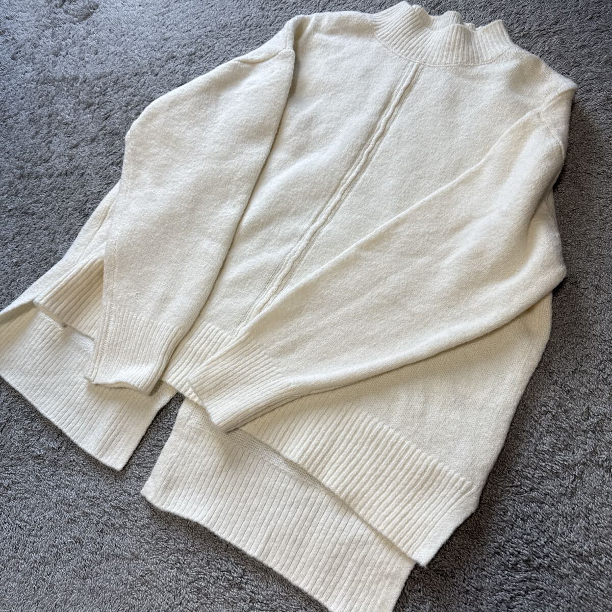 SENSE OF PLACE ストレッチセンターシームセーターアイボリーです。 未使用タグ付きです。 自宅保存なので細かい事を気になさる方は ご入札を避けて下さいね♪ サイズはONEサイズです。 平置きで身幅67センチ 着丈77センチ 素人なので多少の差はご了承ください。 品質はポリエステル98% ポリウレタン2%です。 実際のお色と画像は光の具合により 多少異なる場合があります。 | |||