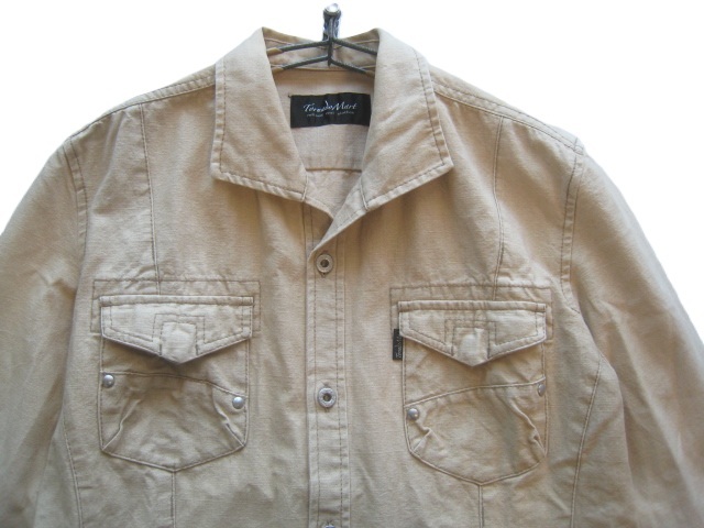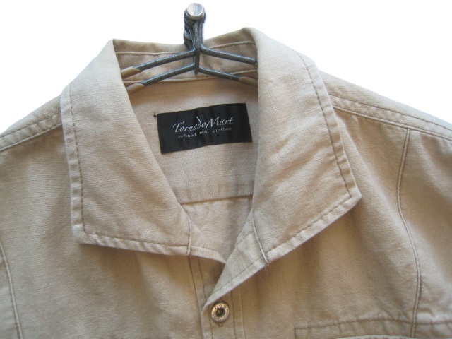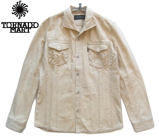美品!!トルネードマート TornadoMart*ヴィンテージ加工 ウレタンコーティングカラーデニムシャツジャケット L ベージュ スピックインターナ