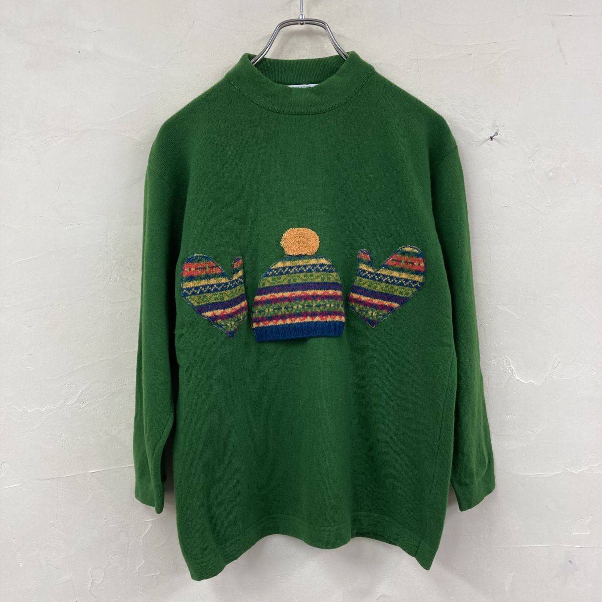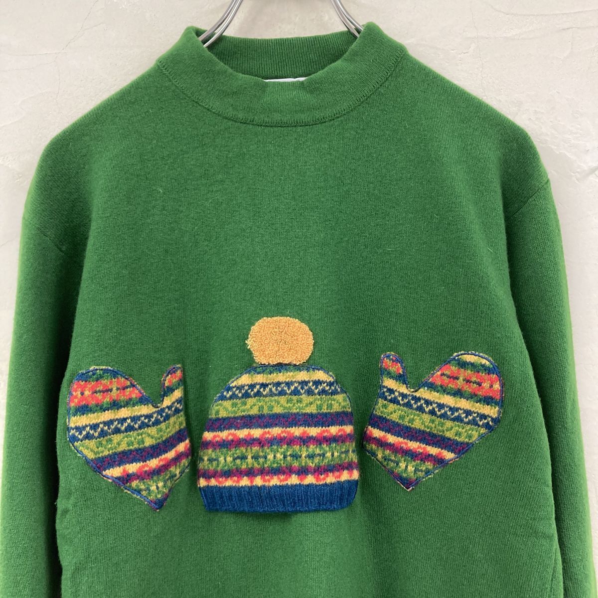 2O1568-W-N◆イタリア製◆UNITED COLORS OF BENETTON ベネトン ハイネック 長袖ニット カラーニット レトロ◆size:XS グリーン ウール