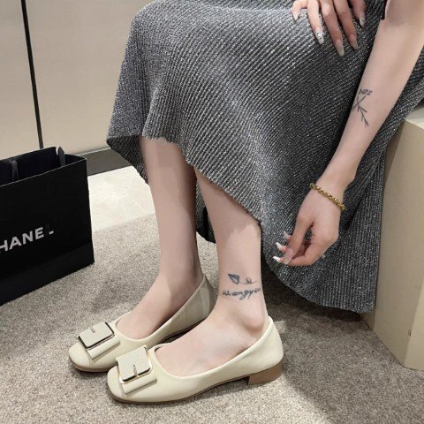 ・ぺたんこローヒールで疲れにくく歩きやすい。