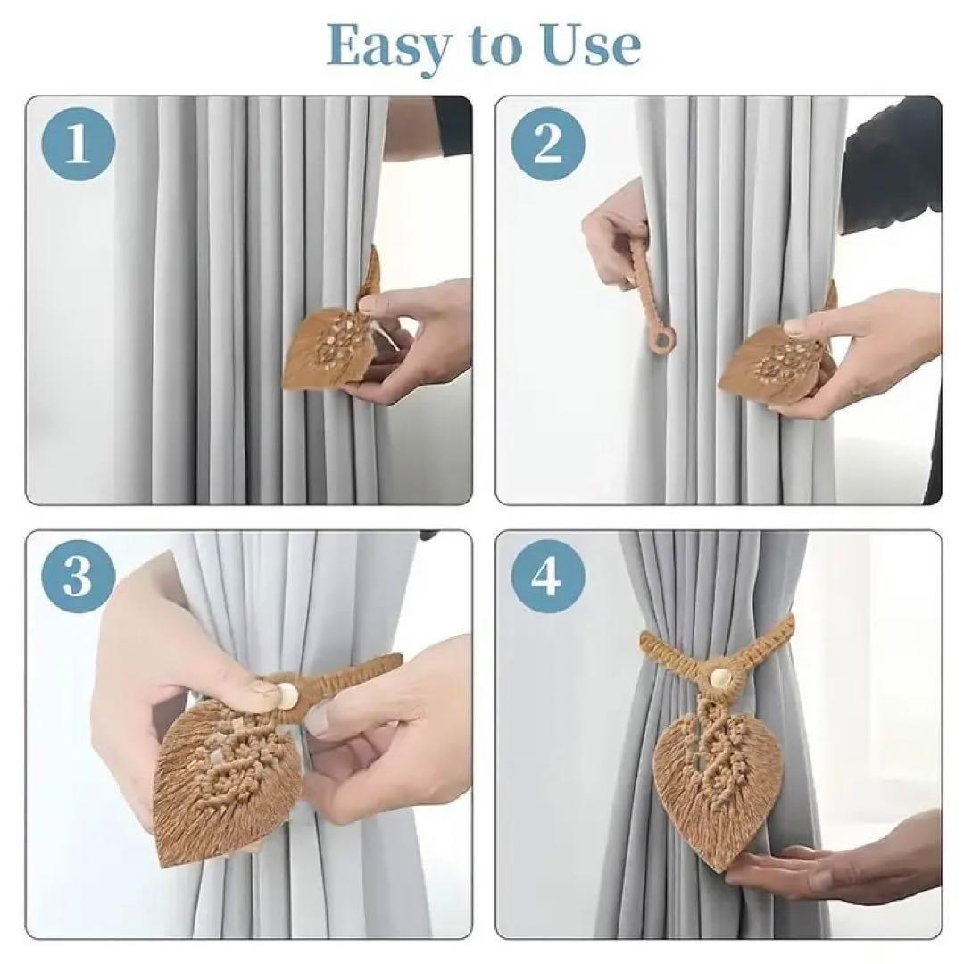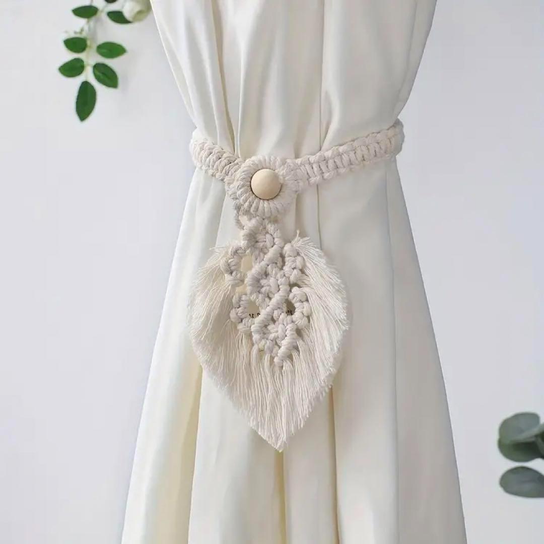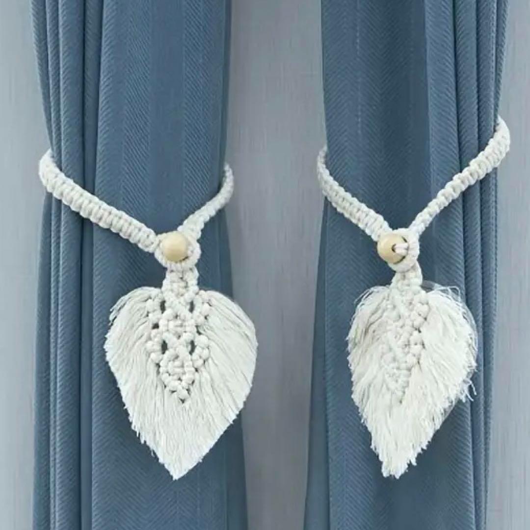 カーテンタッセル 編み カーテン 留め具 カーテンタイバック リーフ型 カーテン留め飾り カーテン止め 取り付け簡単 カーテンアクセサリー